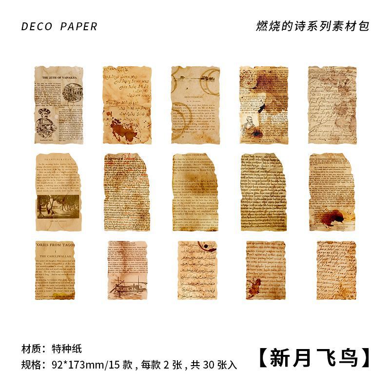 Infeel.me 재료 패키지 불타는 시 시리즈 복고풍 문학 수첩 일기 장식 기본 용지 4가지 스타일스토어 가기