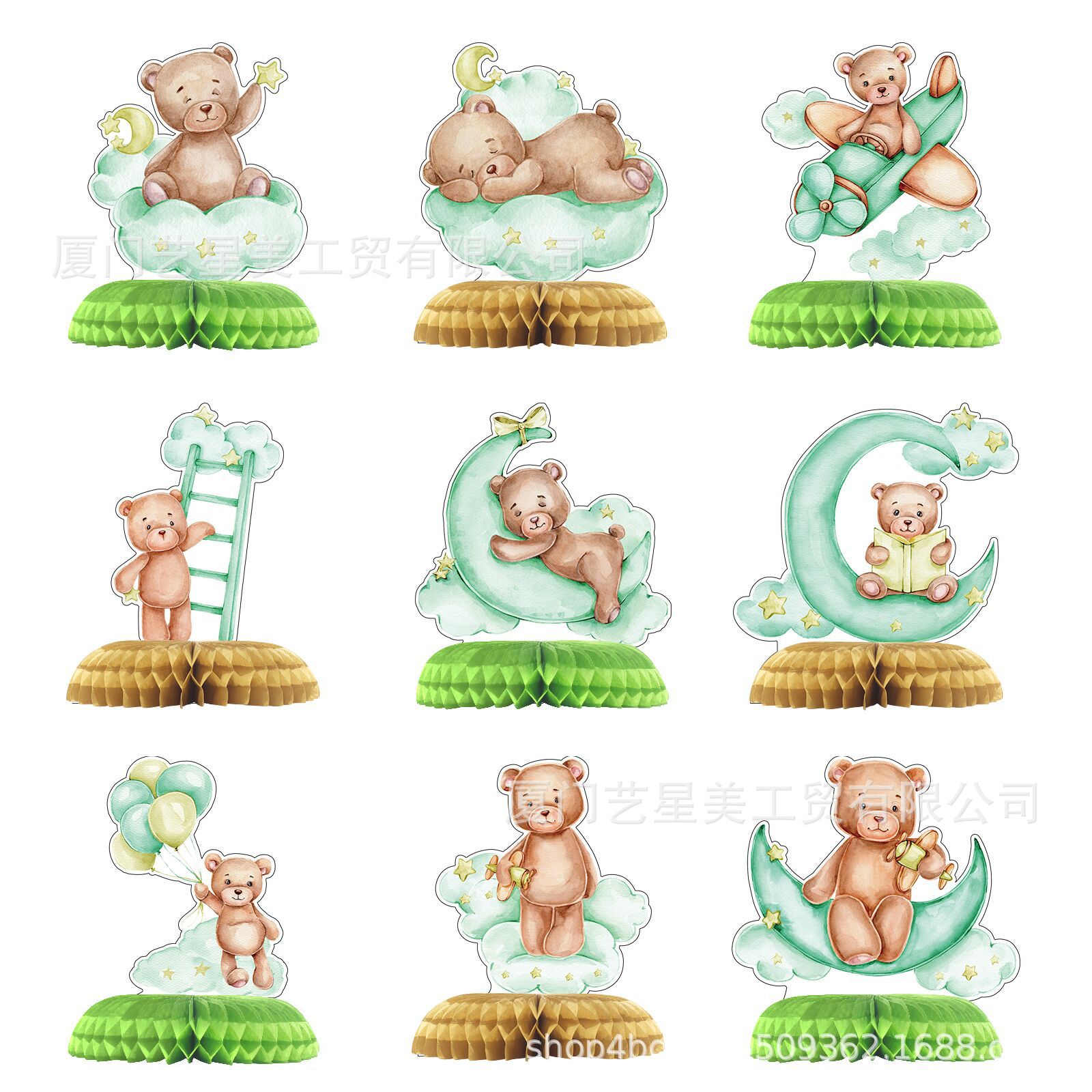 테디 베어 테마 어린이 파티 세트 벌집 기초 데스크탑 장식품 3D 서 벌집 세트