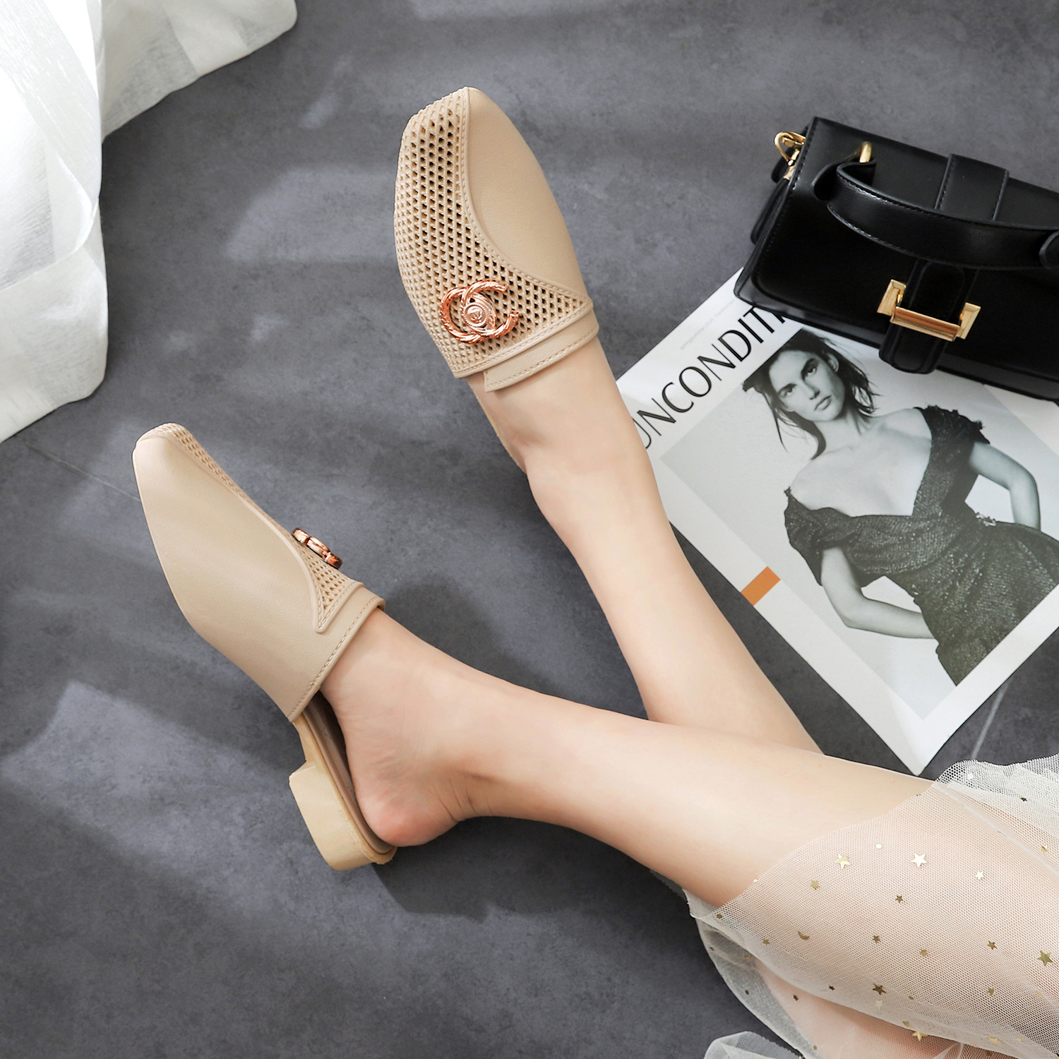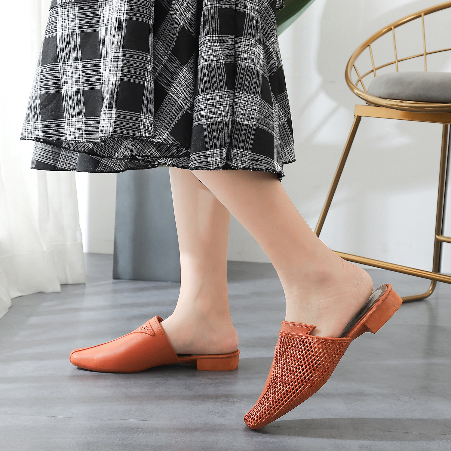 여름 여성 패션 플랫 슬리퍼 새로운 닫힌 발가락 하프 슬리퍼 속이 빈 캐주얼 샌들 플립 플롭 여성 신발 신발스토어 가기