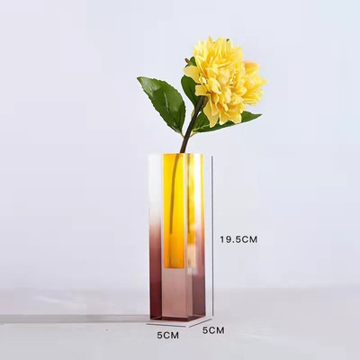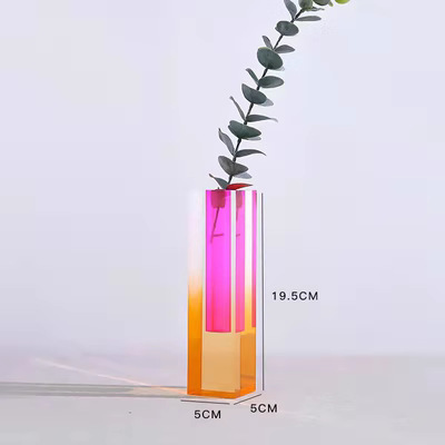 간단한 북유럽 아크릴 그라디언트 꽃병 사각 기둥 유리 거품 꽃 배열 수경 재배