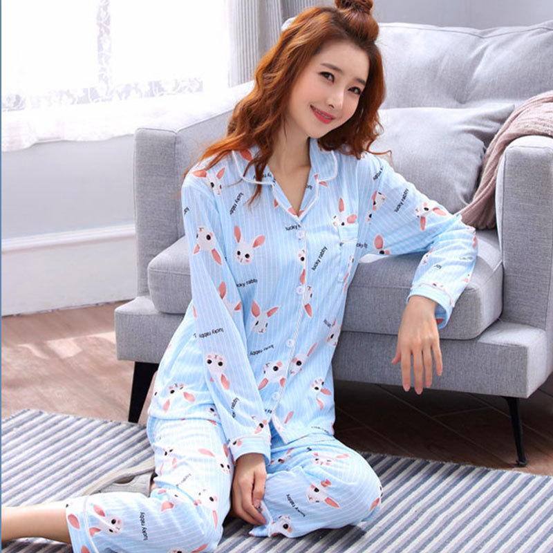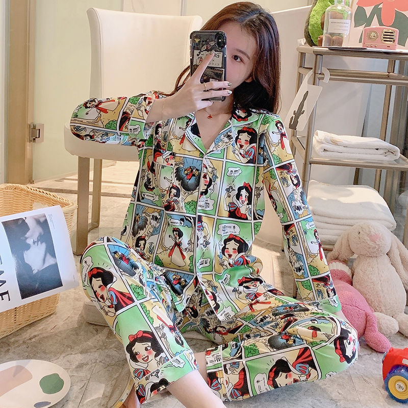 파자마 여성의 한국식 달콤한 귀여운 인터넷 트렌디 긴팔 가디건 학생 소녀의 캐주얼 세트 가정복