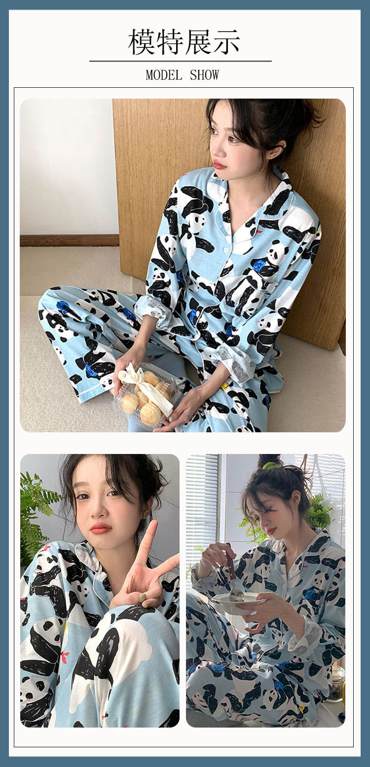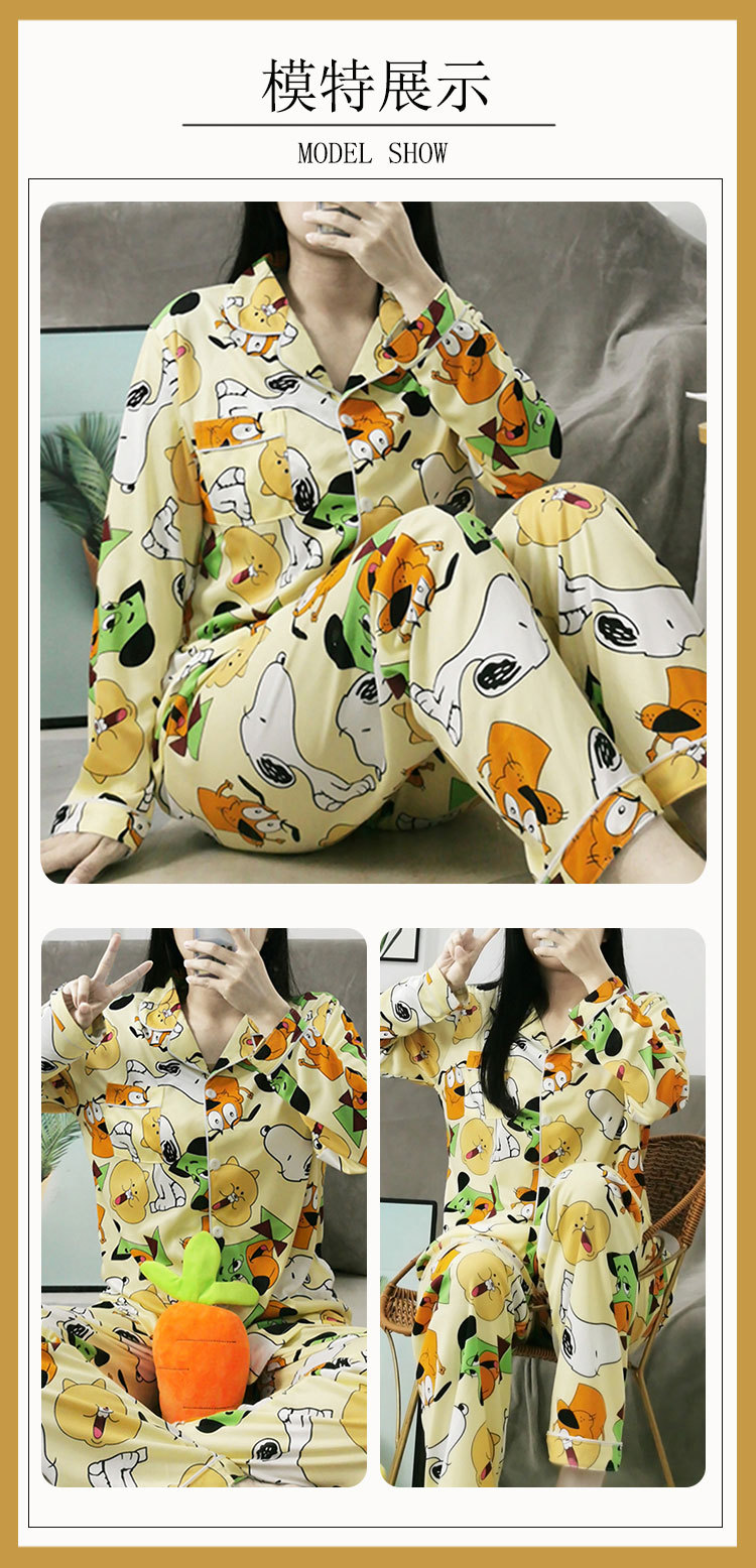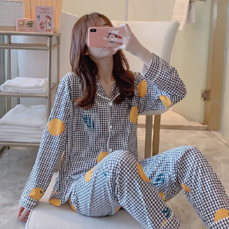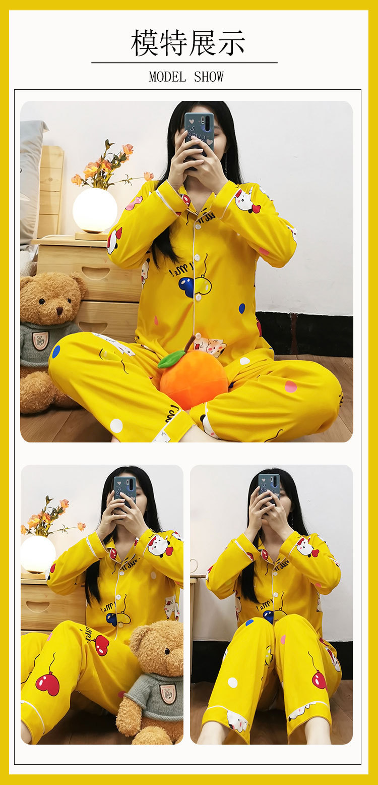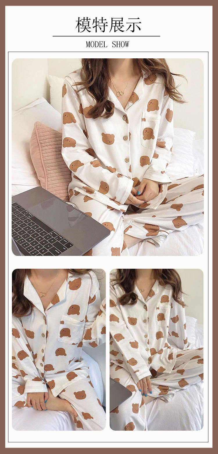 파자마 여성의 한국식 달콤한 귀여운 인터넷 트렌디 긴팔 가디건 학생 소녀의 캐주얼 세트 가정복스토어 가기