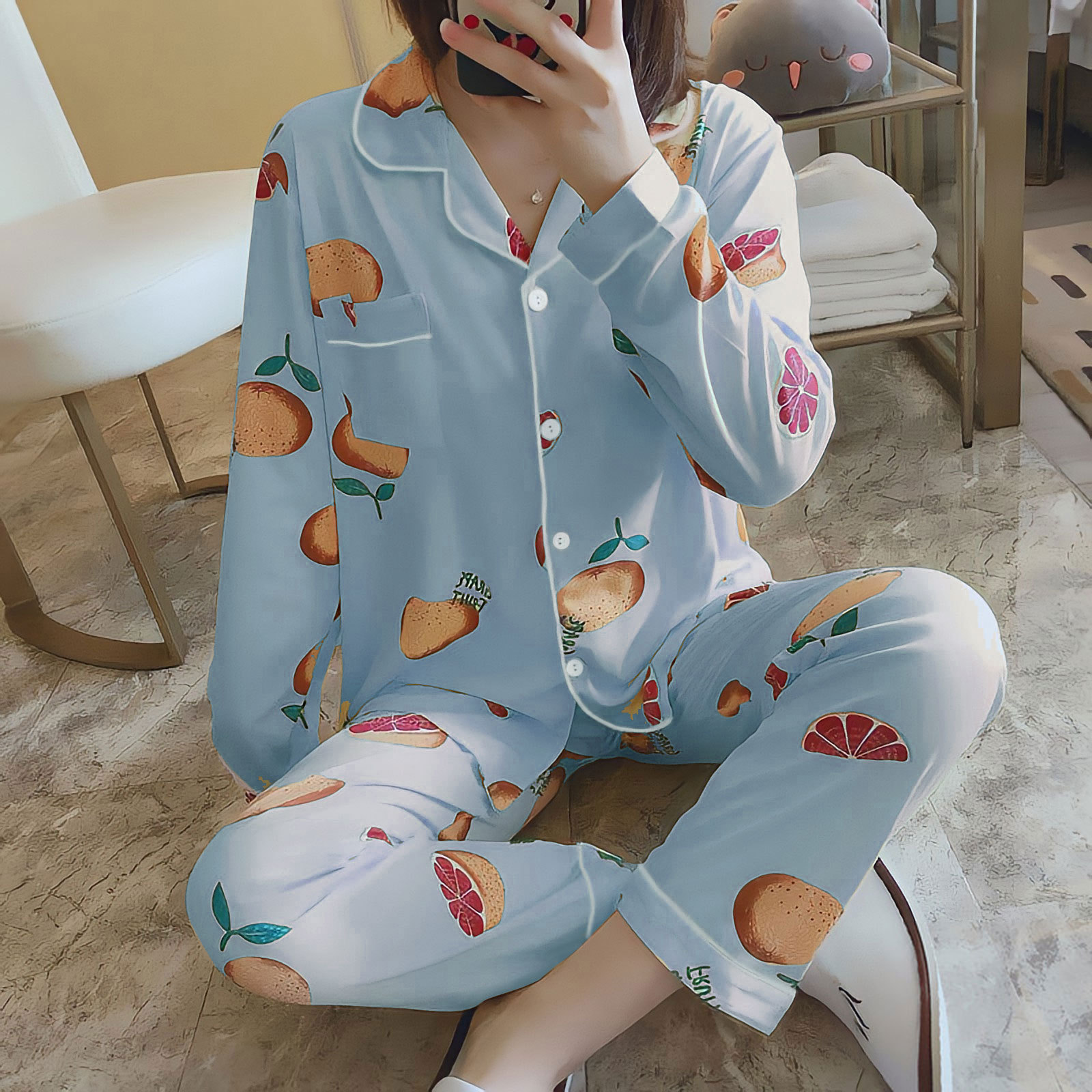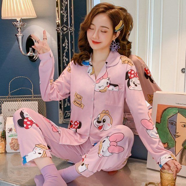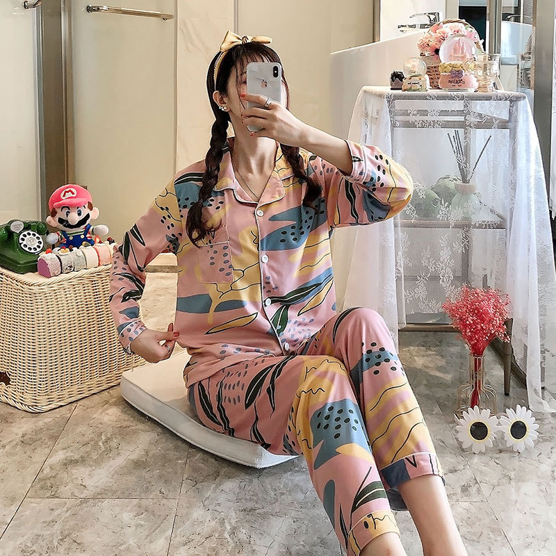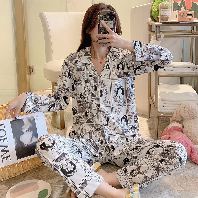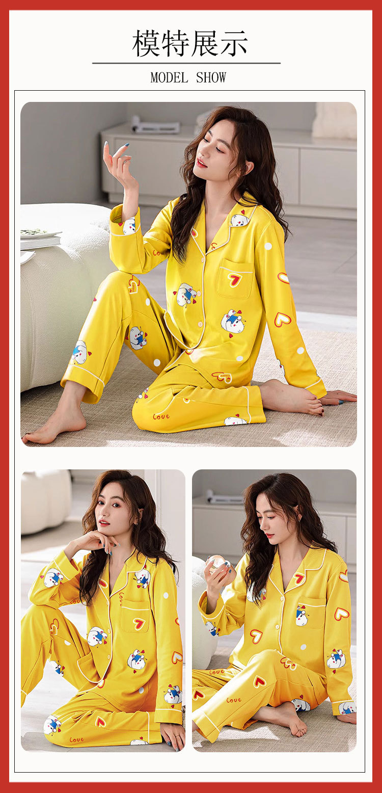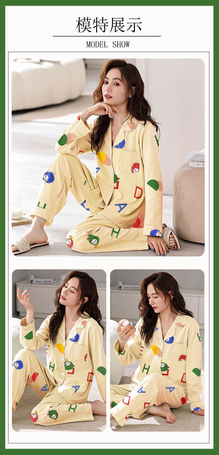 파자마 여성의 한국식 달콤한 귀여운 인터넷 트렌디 긴팔 가디건 학생 소녀의 캐주얼 세트 가정복스토어 가기