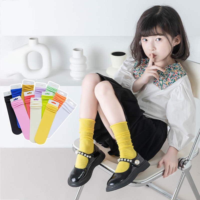 봄과 여름 얇은 어린이 얼음 양말 단색 벨벳 말뚝 양말 크기 어린이 양말 세로 줄무늬 스타킹