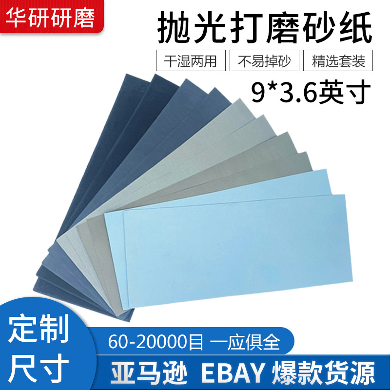 디자인 이베이 아마존 크로스 보더 폭발 9*3.6 인치 사포 건조하고 젖은 60 # ~ 20000 # 세트 사포