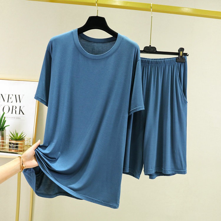 모달 반팔 티셔츠 남성용 세트 여름 얇은 플러스 사이즈 캐주얼 느슨한 라운드 넥 모든 매치 홈 슬리밍 잠옷