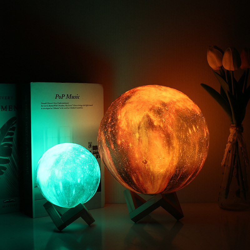 플래닛 램프 3D 달 램프 침실 침대 옆 램프 USB 분위기 램프 가볍게 두드리는 달 램프 페인트 슬러시 플라스틱 행성 램프스토어 가기