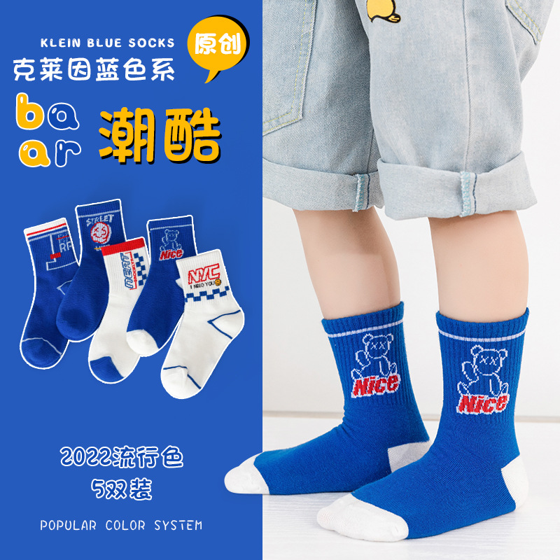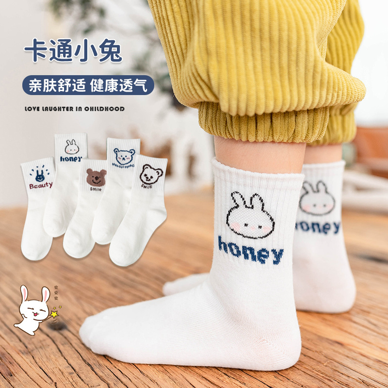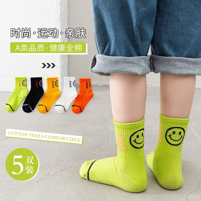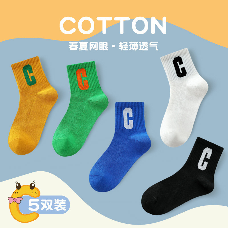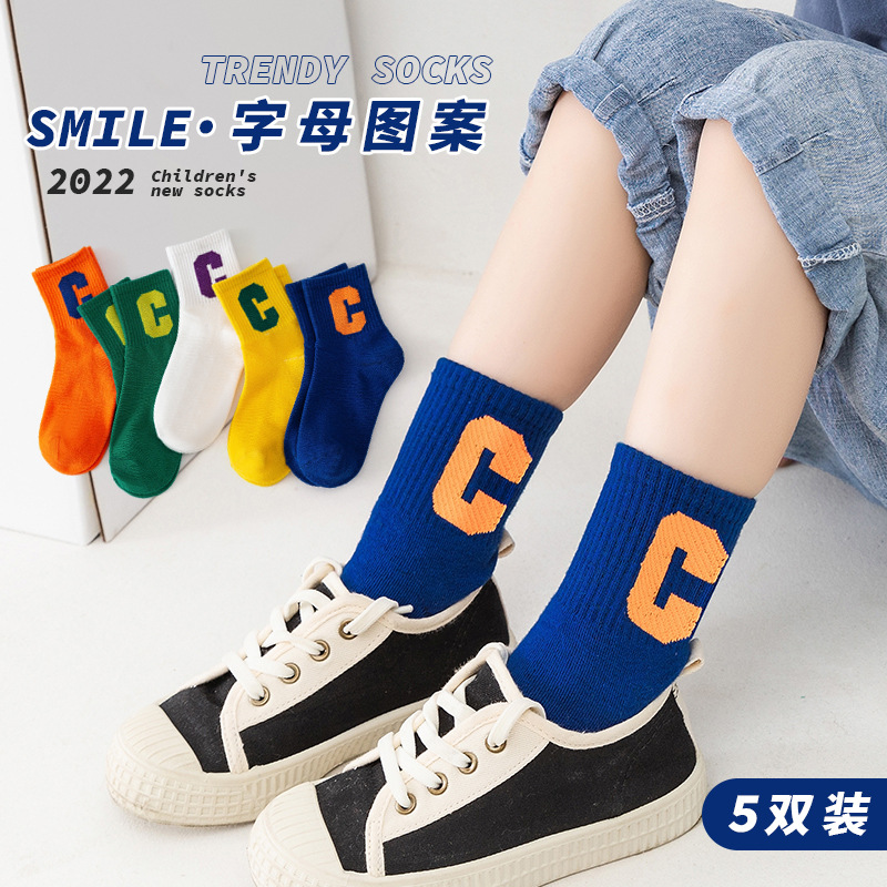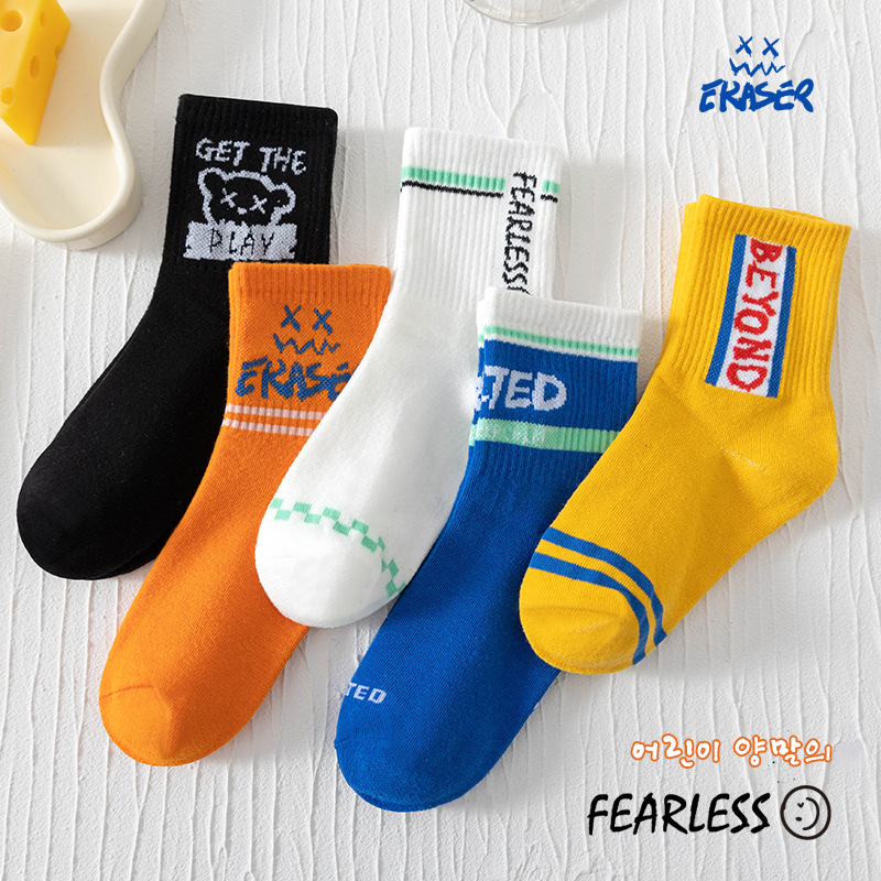 어린이 양말 봄과 가을 중간 튜브 유행 양말 소년 소녀 중학교 어린이 학생 알파벳 스포츠 디지털 영어 면 양말