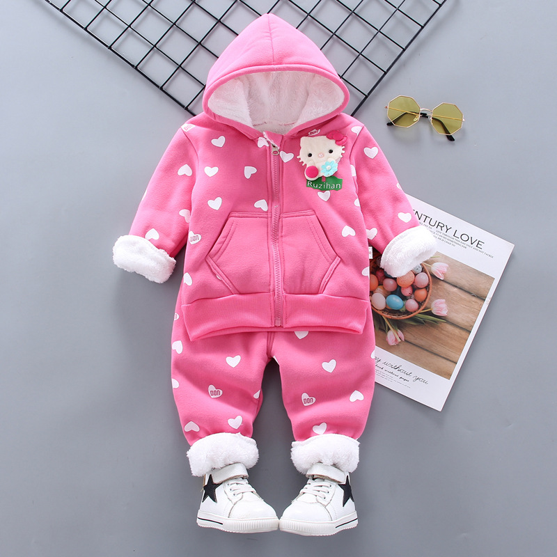 0-5 도매 남자와 여자 우유 실크 세트 가을과 겨울 기모 두꺼운 남자 아기 캐주얼 스웨터 투피스 아동 의류 2스토어 가기