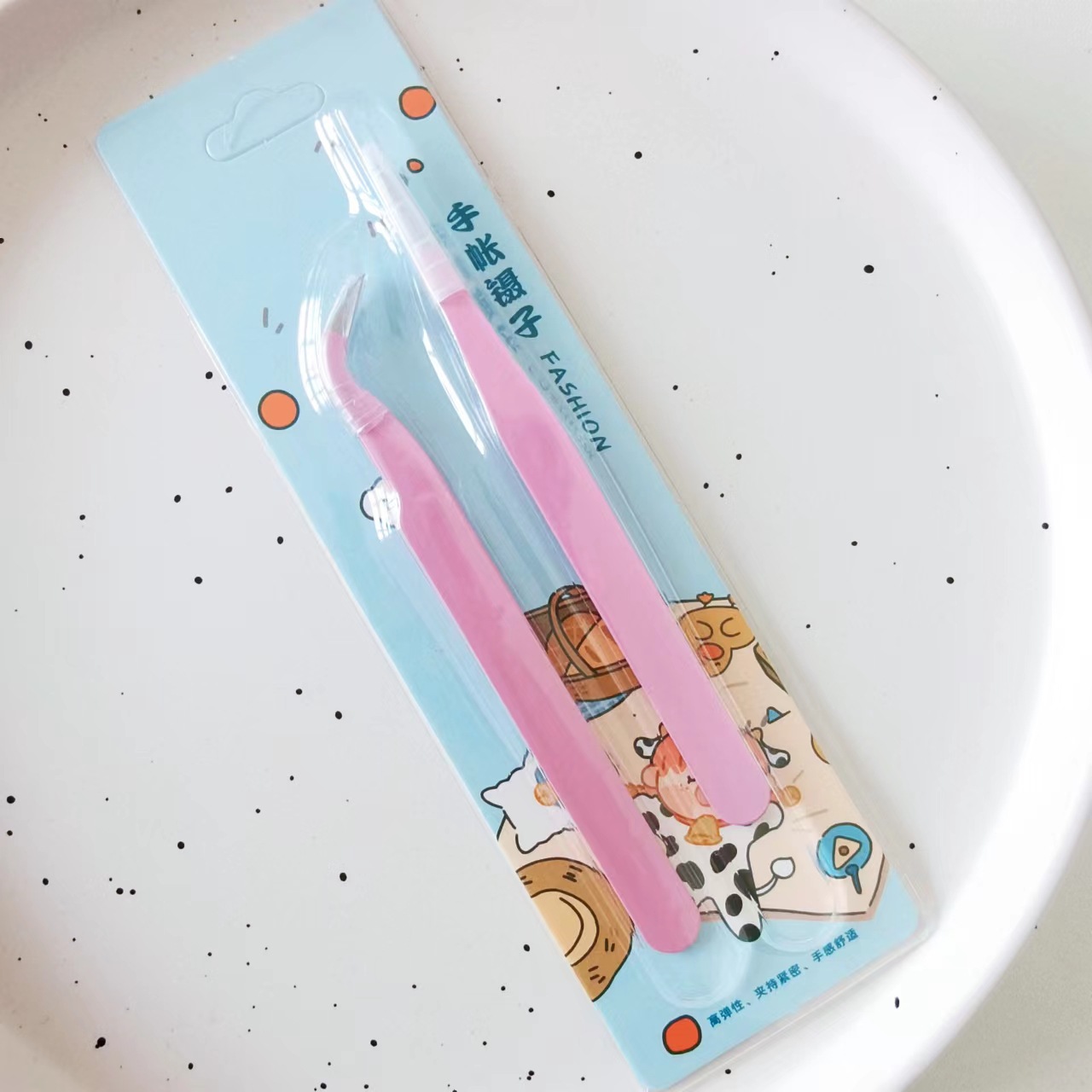 컬러 핀셋 스트레이트 헤드 + 팔꿈치 플랫 헤드 ESD 뷰티 네일 DIY 스틸 핀셋 재고 핸드 계정 스티커 2 장