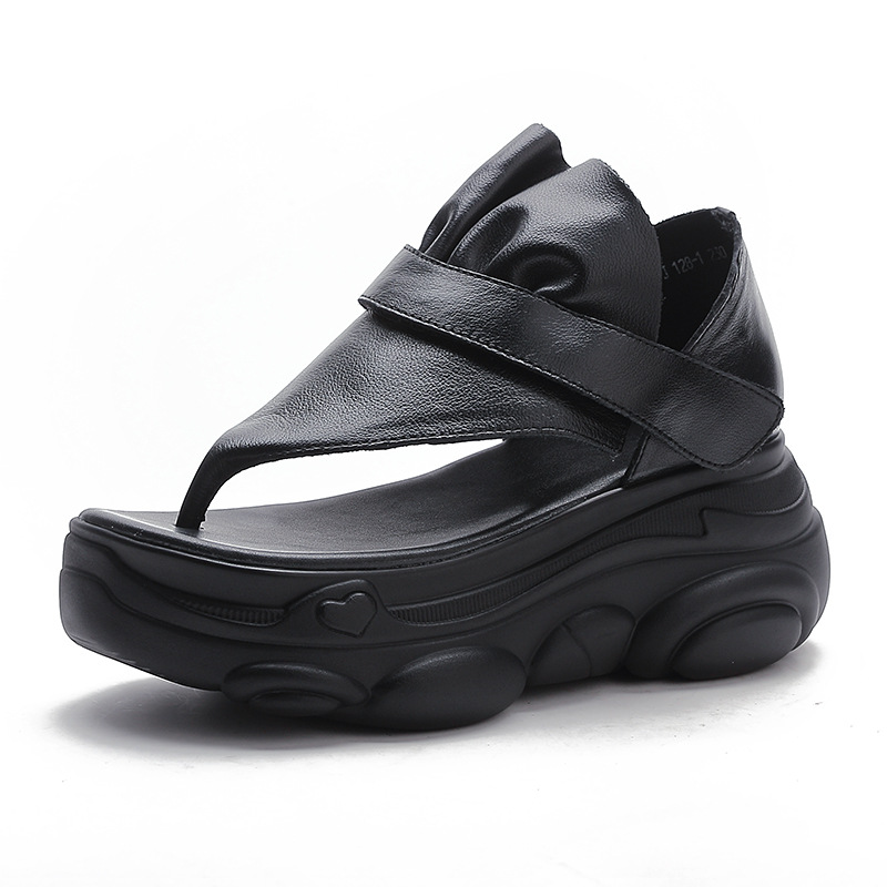 여성을위한 첫 번째 레이어 소 가죽 슬리퍼 여름 야외 착용 여름 새로운 플랫폼 힐 플립 플롭 여성을위한 벨크로 정품 가죽 플랫폼 샌들스토어 가기