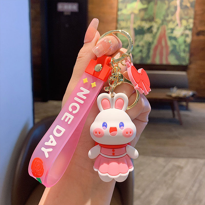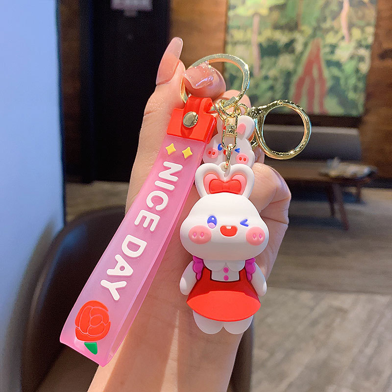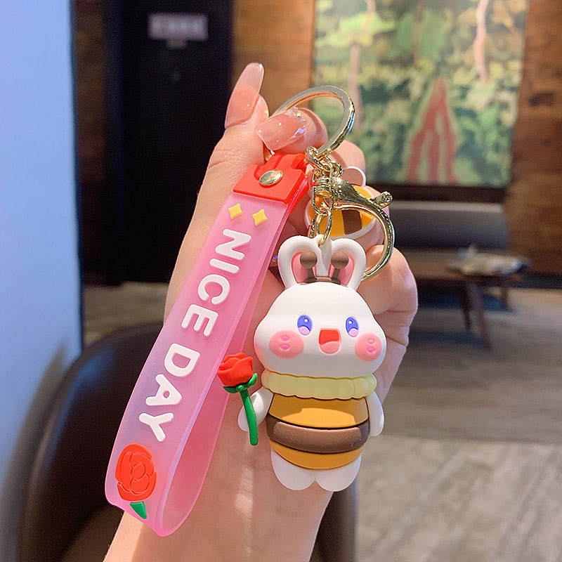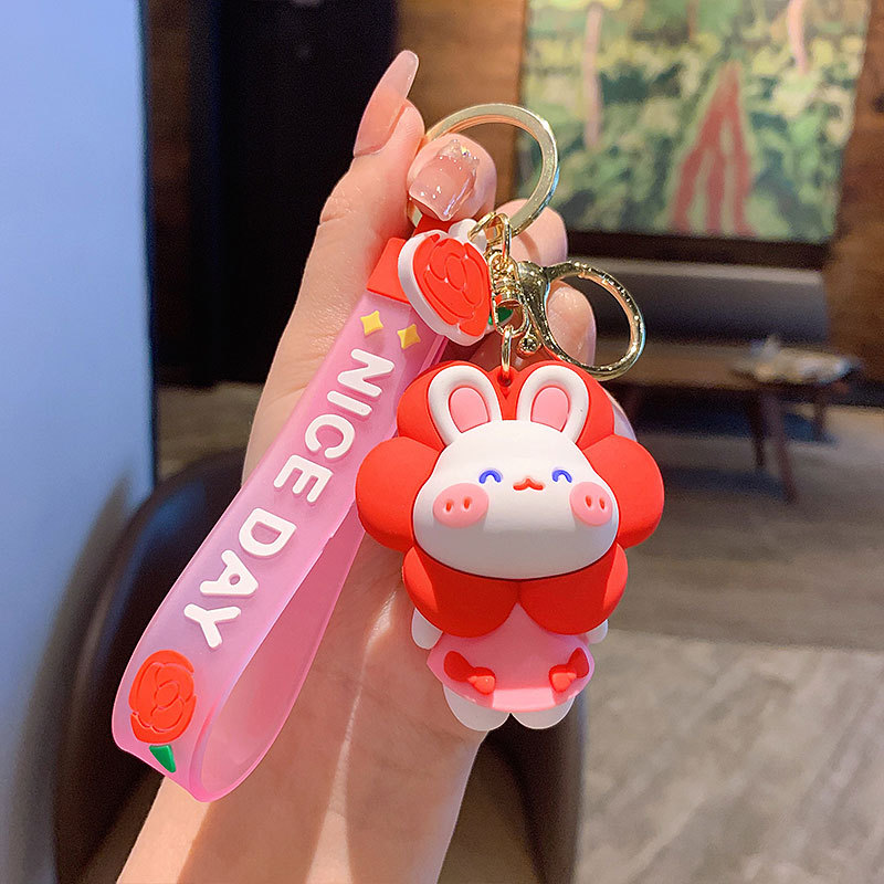 크리 에이 티브 꽃 토끼 시리즈 자동차 열쇠 고리 펜던트 여성 귀여운 만화 커플 책가방 교수형 작은 선물 도매