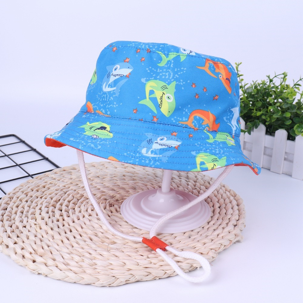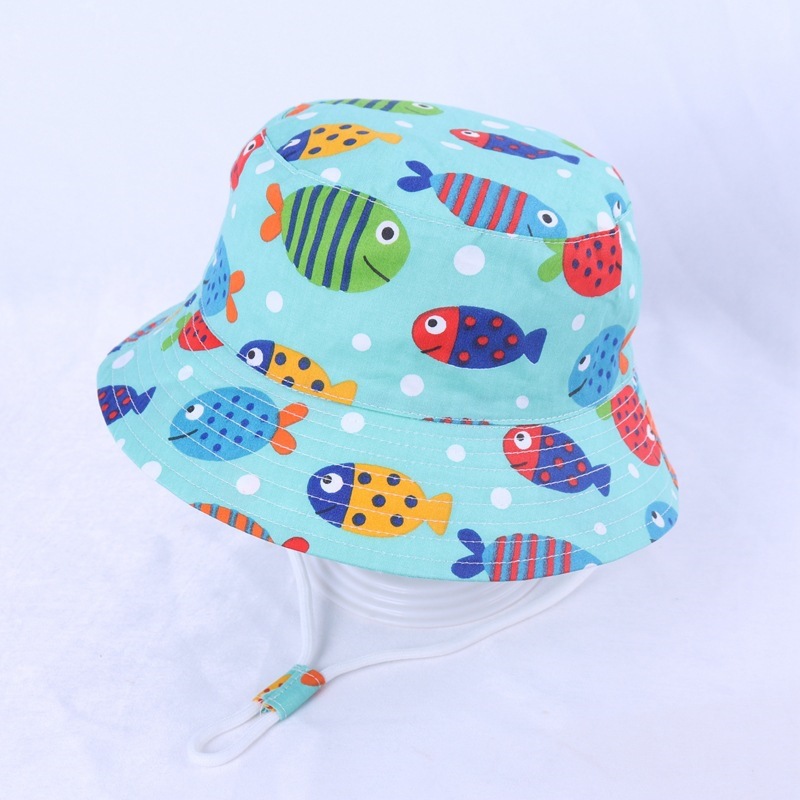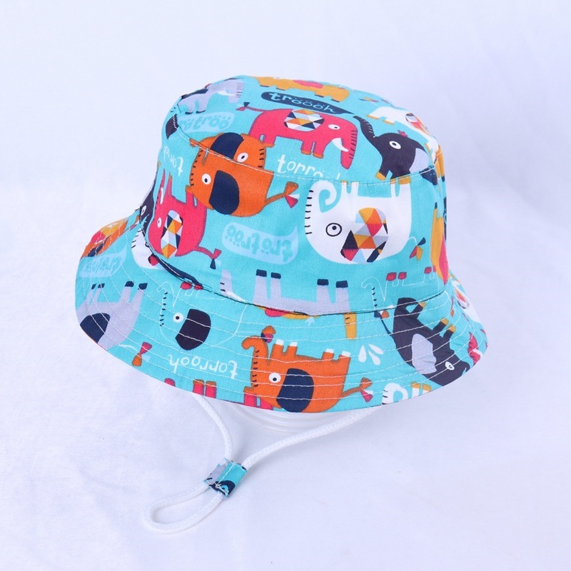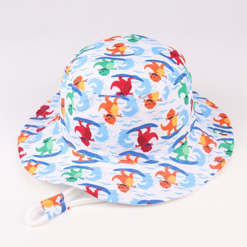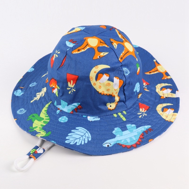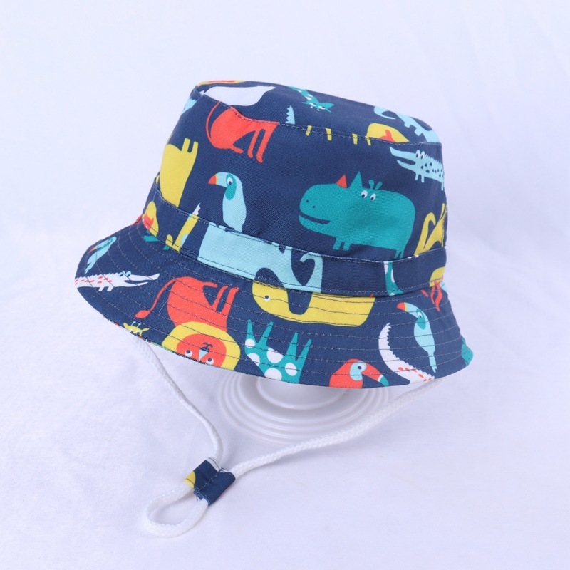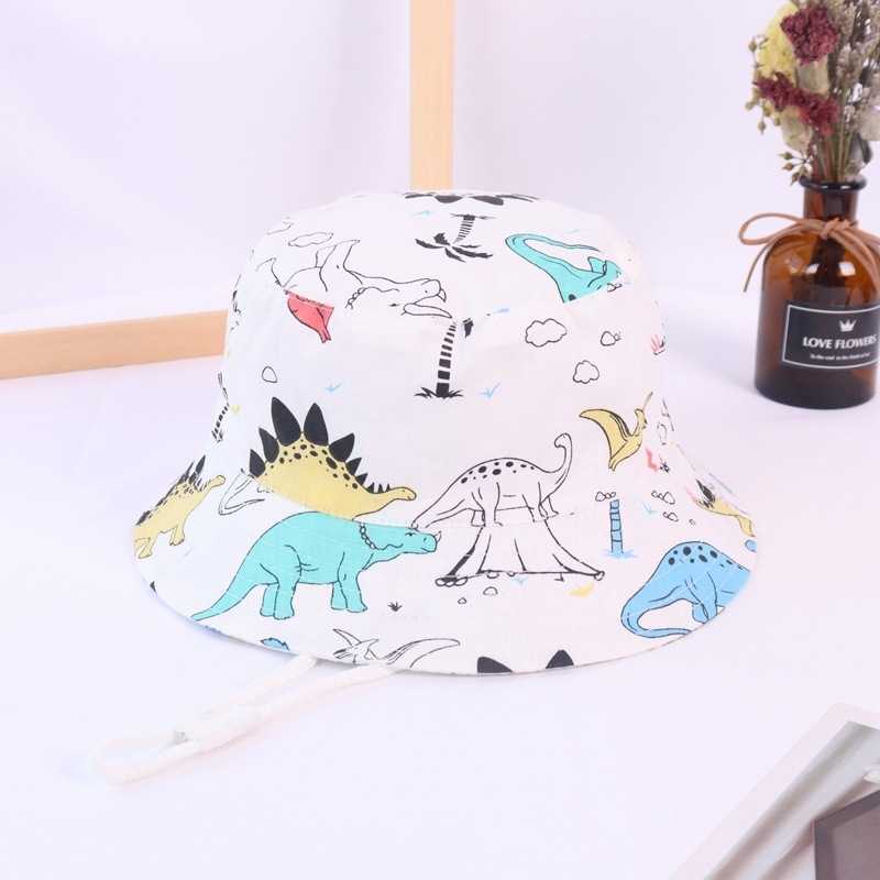 크로스보더 멀티 사이즈 아동 프린트 어부 모자 봄과 가을 얇은 만화 동물 어부 모자 아기 공룡 분지 모자