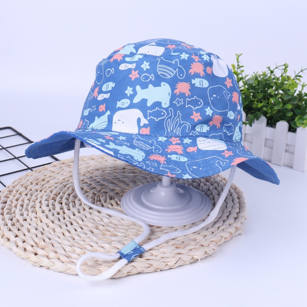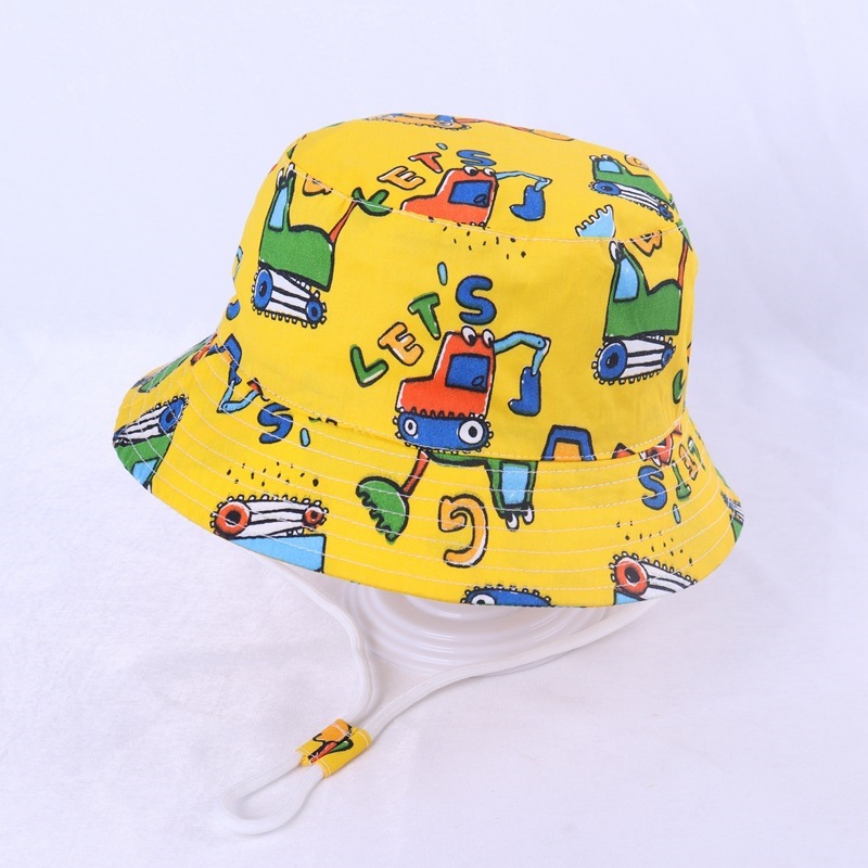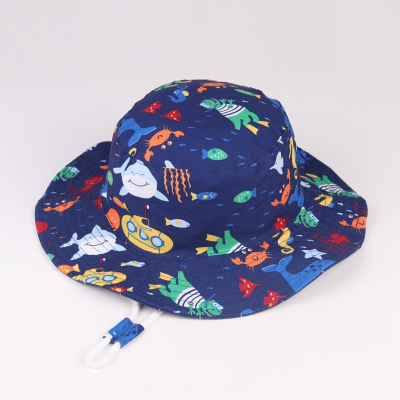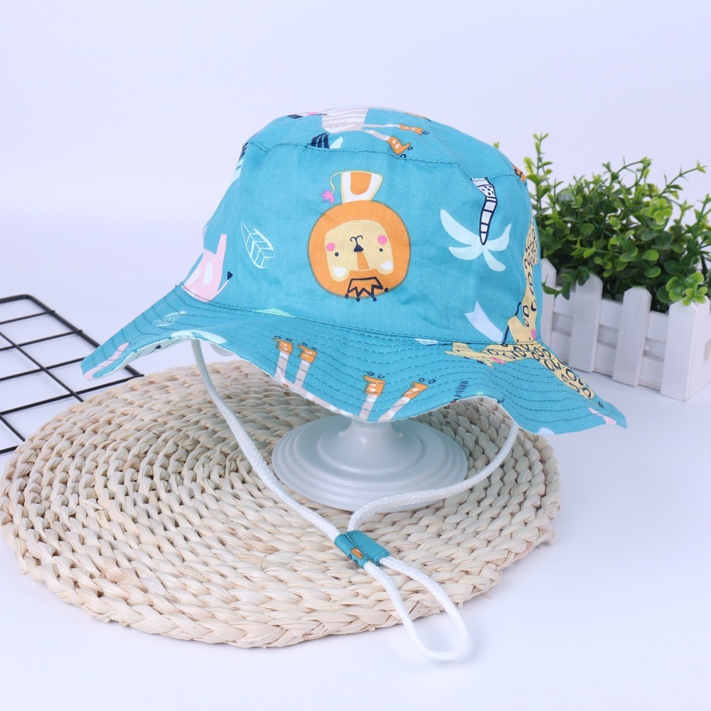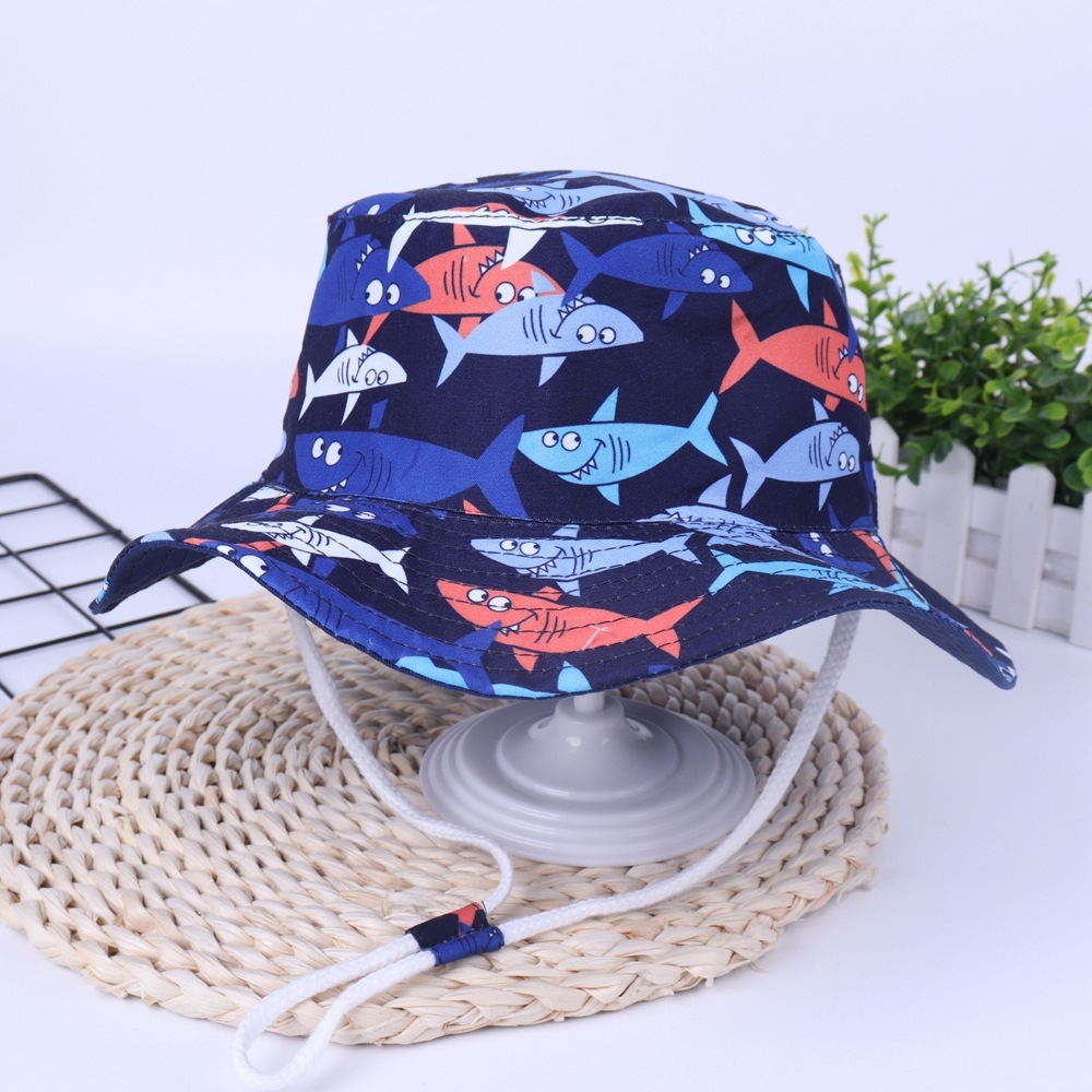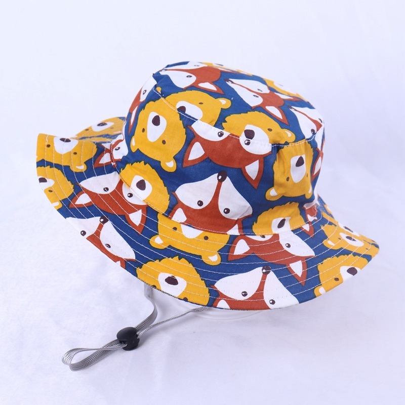 크로스보더 멀티 사이즈 아동 프린트 어부 모자 봄과 가을 얇은 만화 동물 어부 모자 아기 공룡 분지 모자