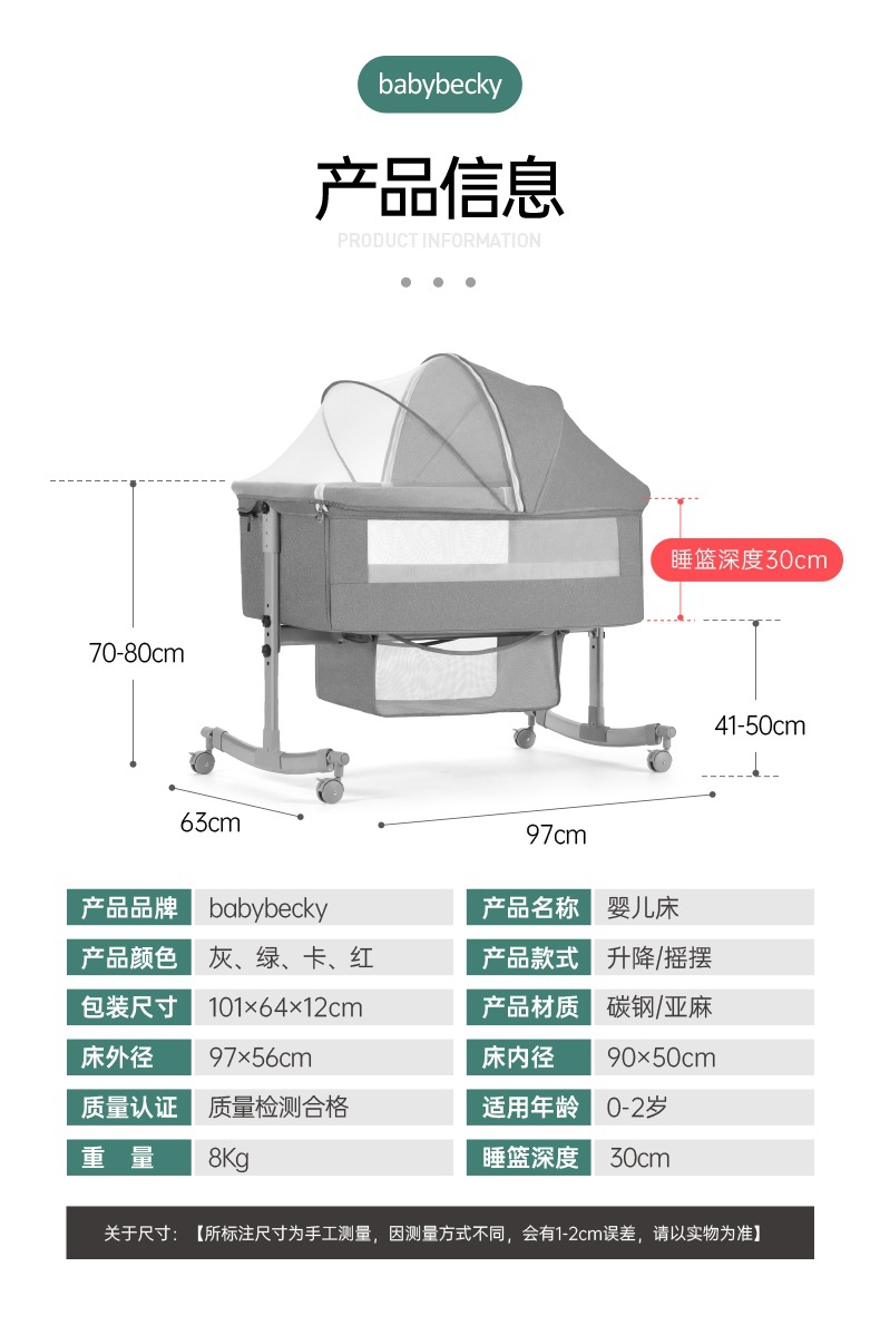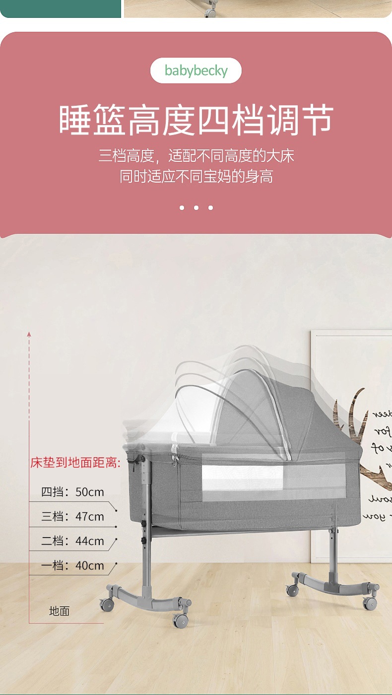 유아용 침대 접이식 휴대용 요람 침대 옆 침대 이동식 아기 침대 바구니 침대 신생아 접합 큰 침대스토어 가기