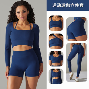 크로스 보더 유럽 및 미국 원활한 단단한 단색 주름 스포츠 긴 소매 상단 높은 탄성 통기성 러닝 피트니스 요가 의류 여성용