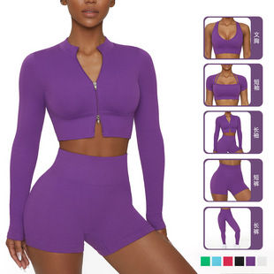 크로스 보더 유럽 및 미국 원활한 단단한 단색 주름 스포츠 긴 소매 상단 높은 탄성 통기성 러닝 피트니스 요가 의류 여성용스토어 가기