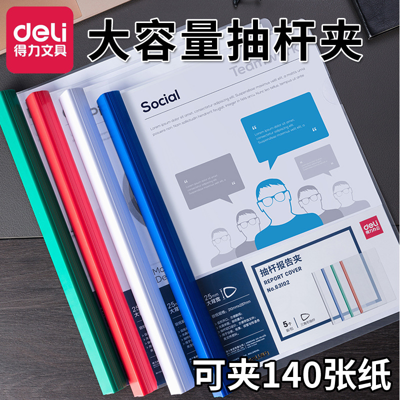 델리 63102 로드 클립 25mm 후면 두께 A4 삼각형 막대 클립 투명 폴더 책 커버 시험지 폴더