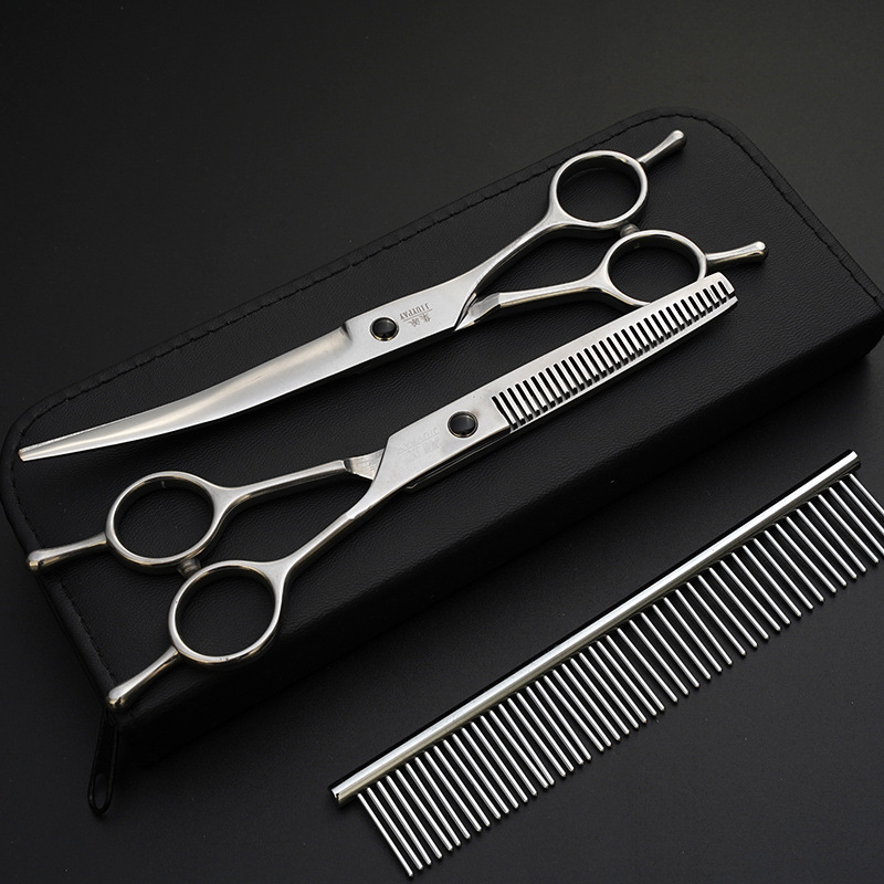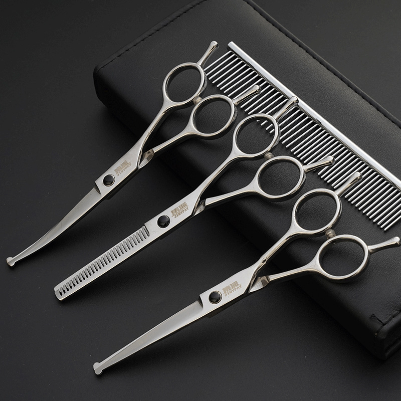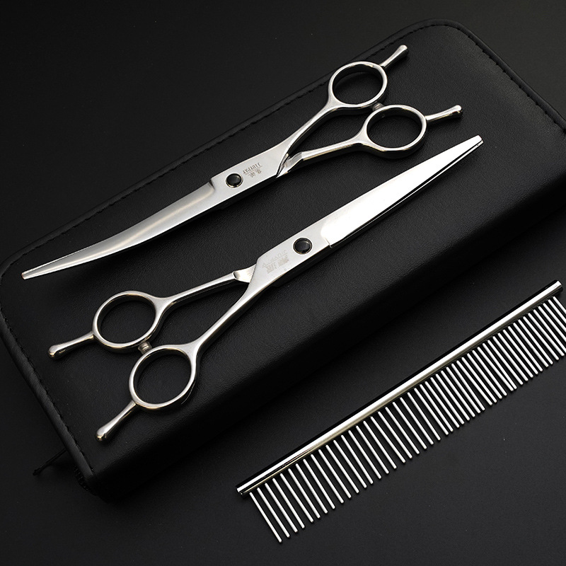 공장 도매 애완 동물 미용 가위 7 인치 개 머리 절단 도구 세트 전문 머리 절단 개 머리 곡선 가위스토어 가기