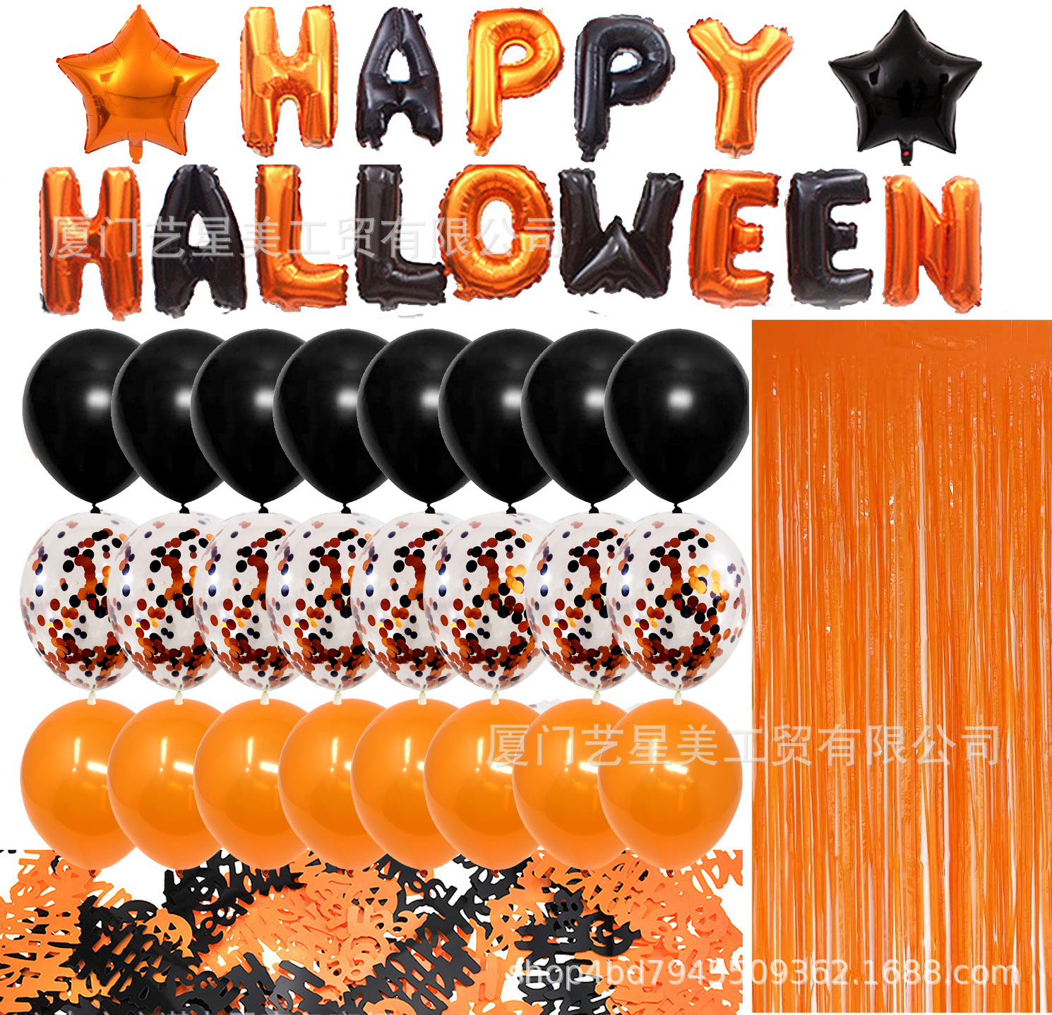 品名:万圣节派对装饰气球套装黑橘色气球Halloween纸屑雨帘场景布置用品