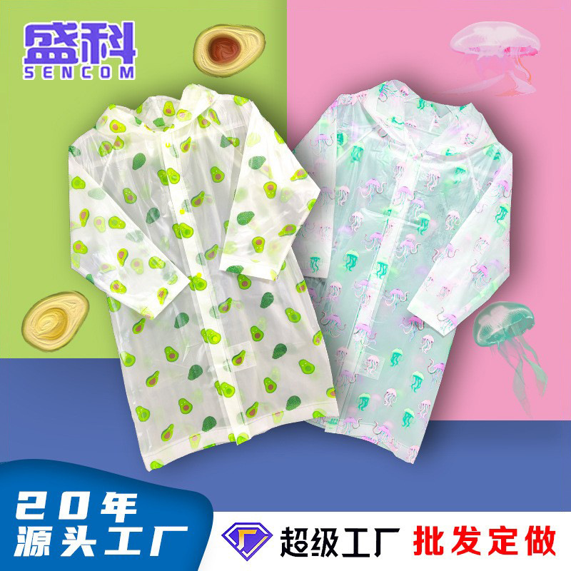 새로운 일회용 맞춤형 아보카도 풀 프린트 패턴 전면 오픈 eva 어린이 비옷 아기 원피스 판초스토어 가기