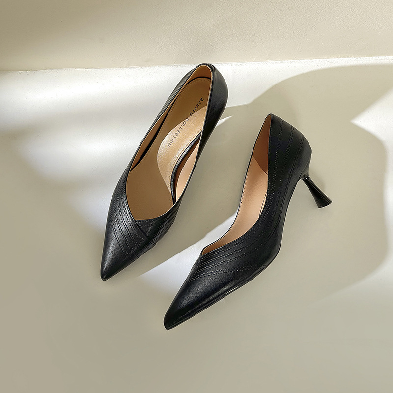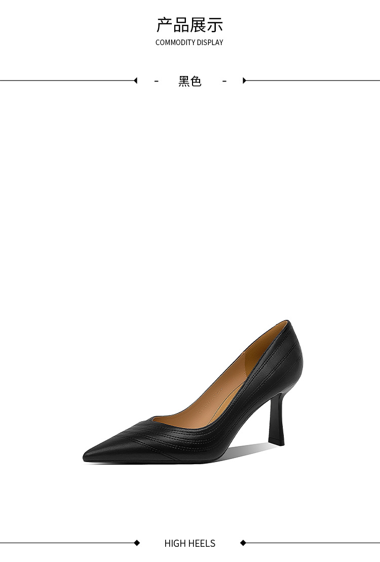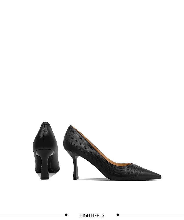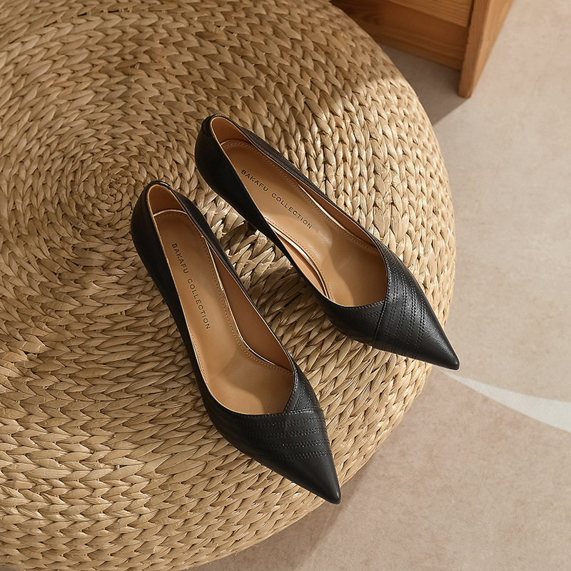【재고 있음】양가죽 하이힐 여성용 스틸레토 2025 신상 얕은 굽 신발 블랙 출퇴근용 직장 신발스토어 가기