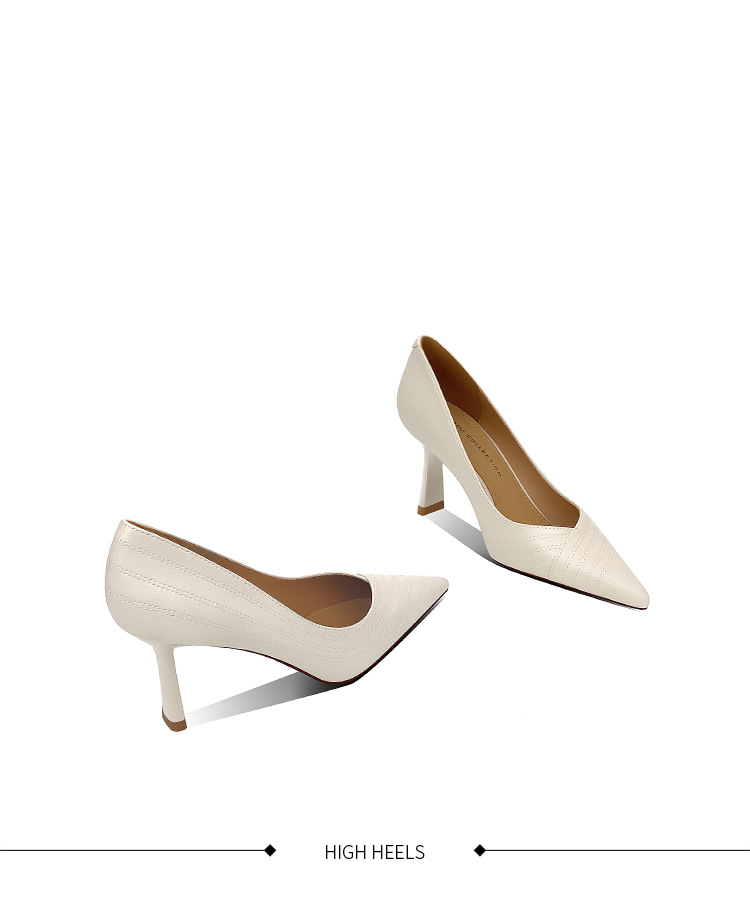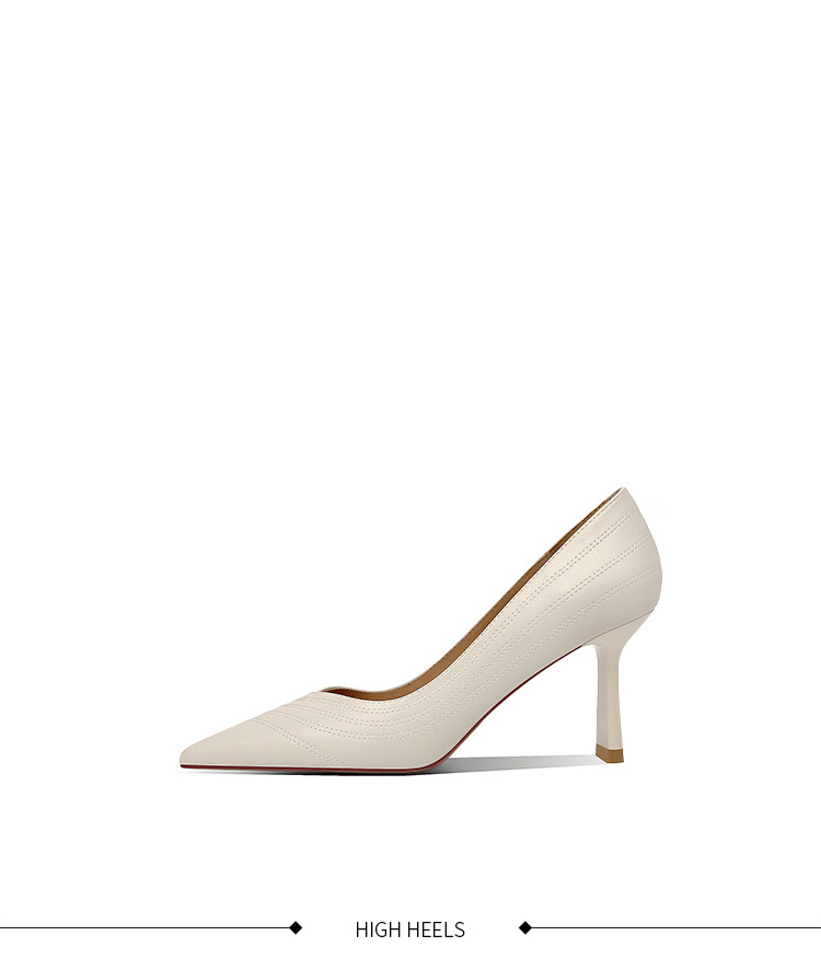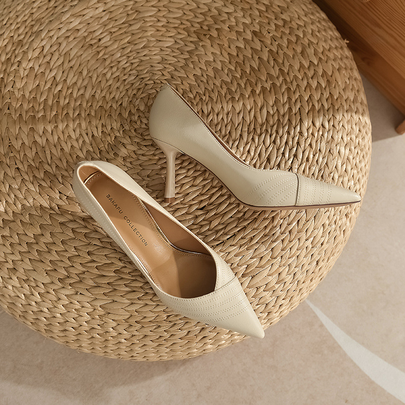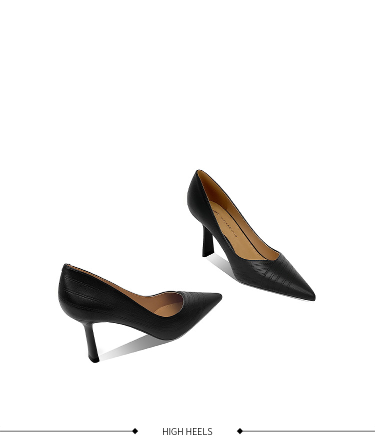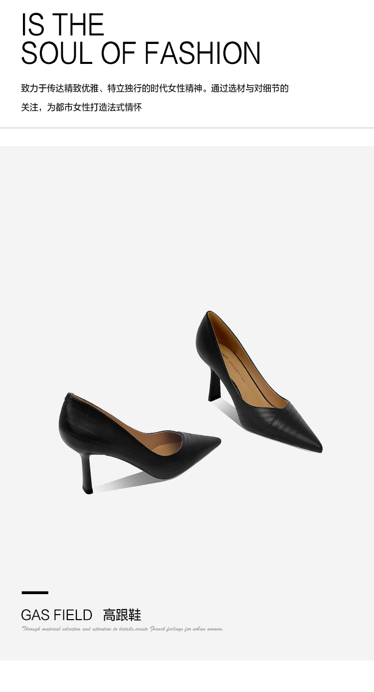 【재고 있음】양가죽 하이힐 여성용 스틸레토 2025 신상 얕은 굽 신발 블랙 출퇴근용 직장 신발스토어 가기