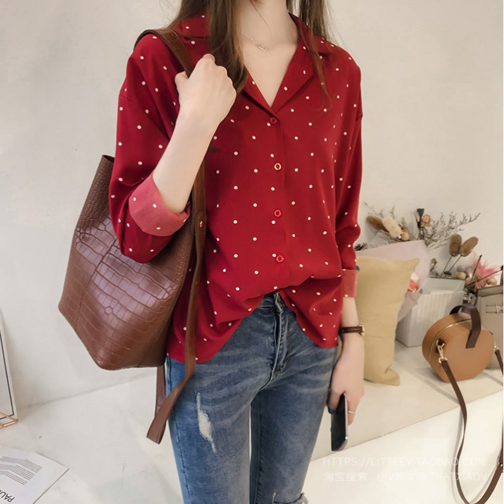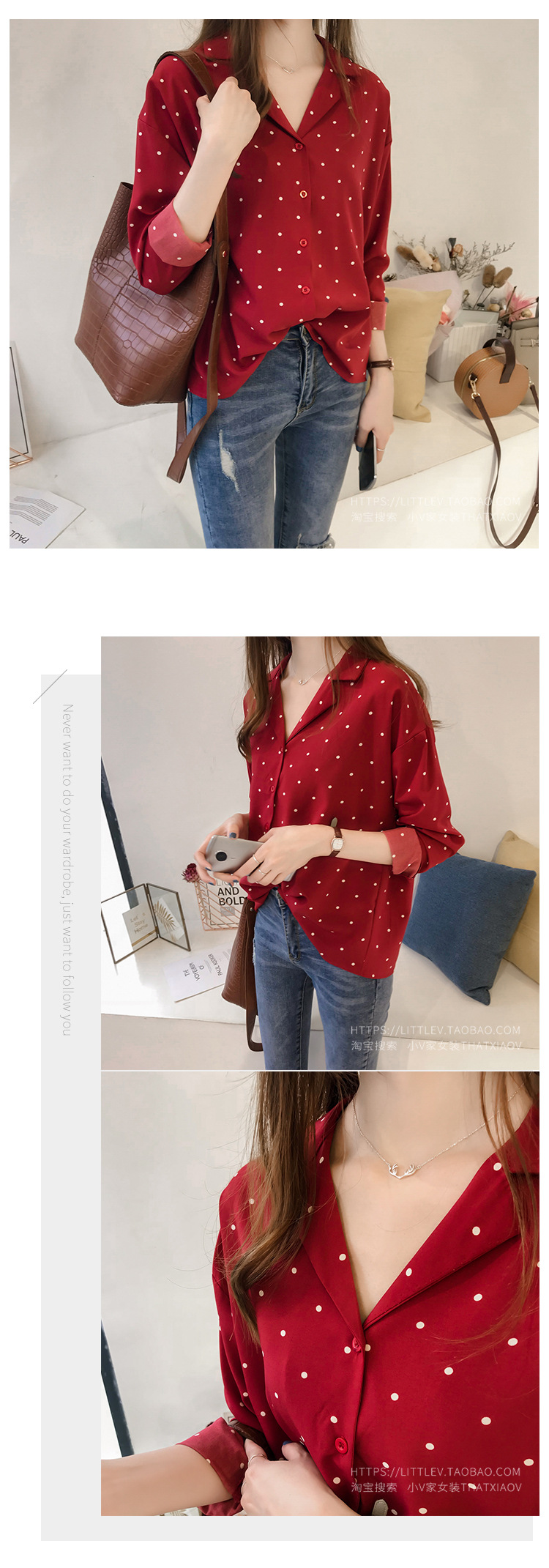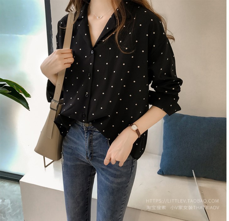 2025 여성용 플러스 사이즈 새로운 홍콩 스타일 폴카 도트 프린트 셔츠 여성용 긴팔 탑 한국 스타일 셔츠 여성용 바닥 셔츠스토어 가기