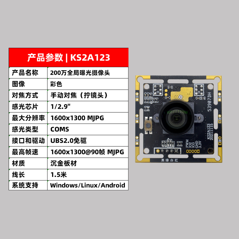 USB 드라이버 프리 글로벌 노출 카메라 모듈 2,000,004: 3 사진 고속 캡처 파이프라인 감지