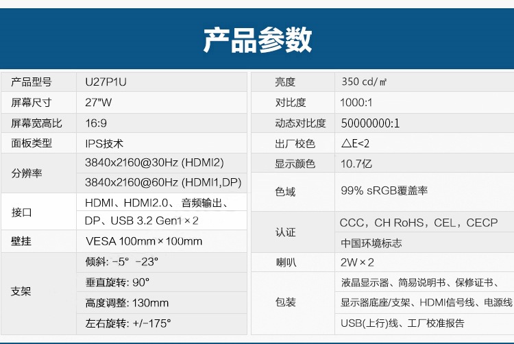 AOC U27P1U 27 "4K 울트라 클리어 IPS 수직 스크린 LCD 디자인 사진 10Bit 디스플레이에 적합스토어 가기