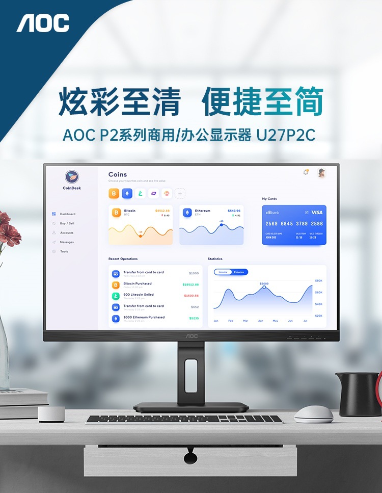 AOC 디스플레이 U27P2C 27 "4K HD Type-C 65W 역 충전 IPS 기술