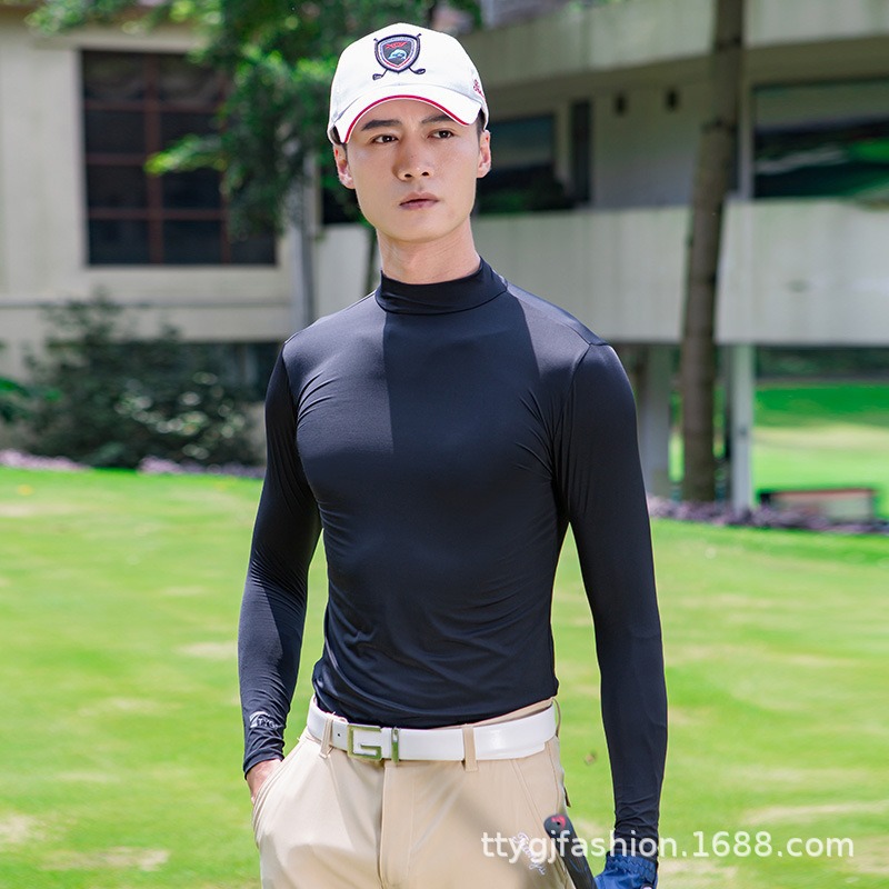 골프웨어 남성용 아이스 실크 자외선 차단 기본 셔츠 긴팔 얇은 티셔츠 여름 스포츠 야외 경량 자외선 차단 탑