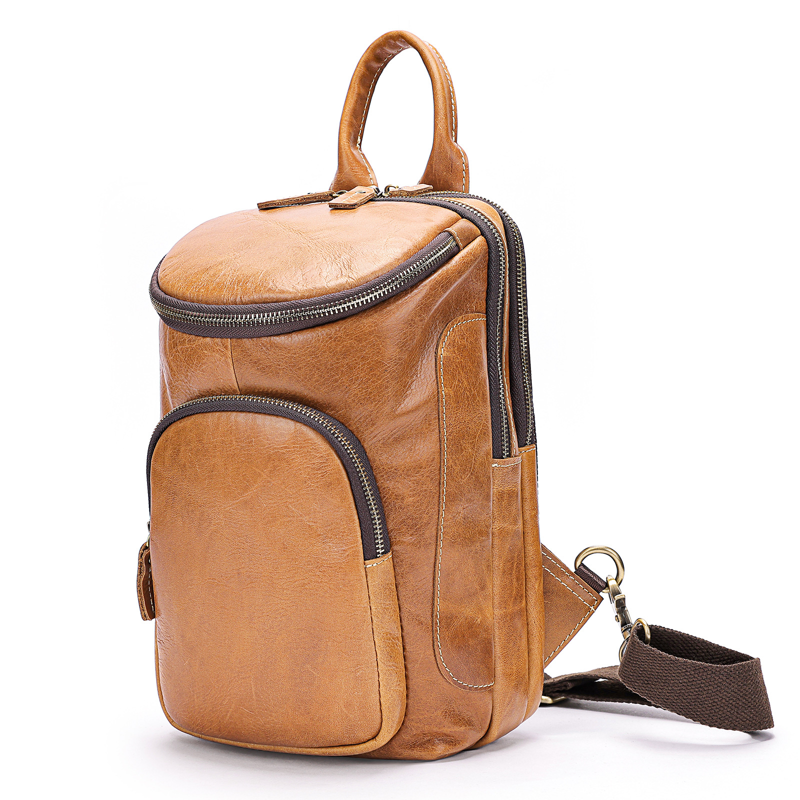 아메리칸 스타일 레트로 미친 말 가죽 대용량 가슴 가방 실린더 정품 가죽 숄더 백 유럽과 미국의 거리 크로스 바디 가슴 남성용 가방스토어 가기