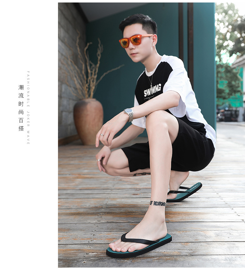 2023夏季新款沙滩拖鞋室外一字拖防滑厚底韩版个性男士凉鞋外穿潮