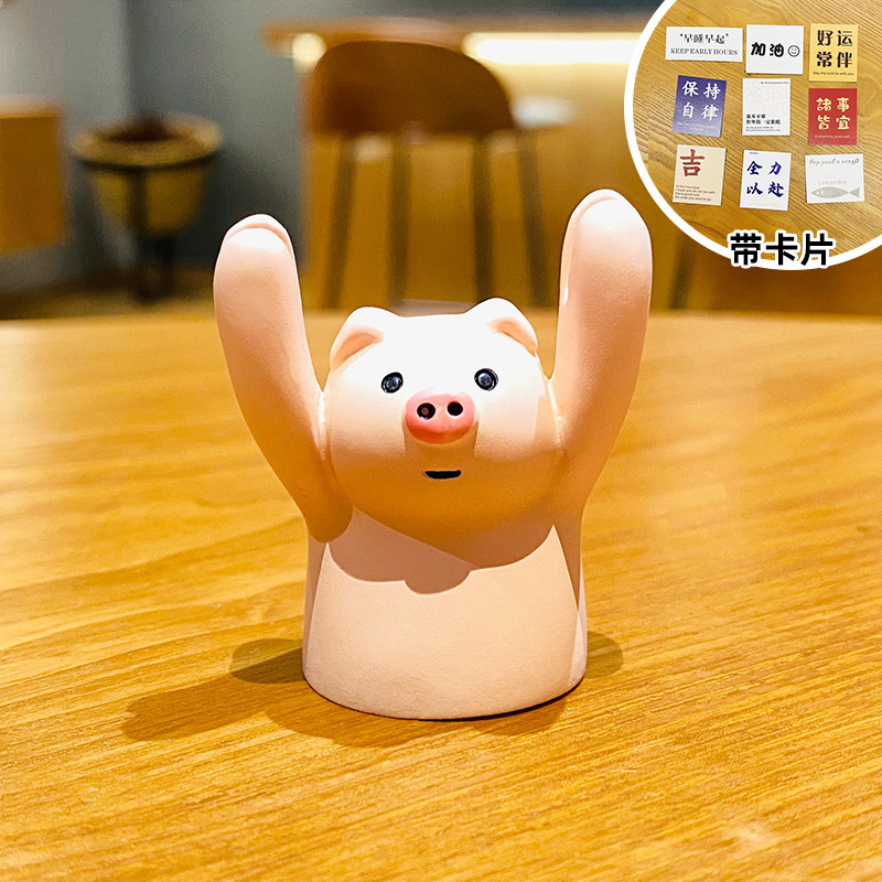 크리 에이 티브 손을 들어 돼지 영감 장식품 데스크탑 홈 장식 명함 사진 참고 클립 작은 선물 도매스토어 가기
