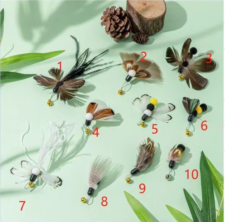 새로운 고양이 지팡이 시뮬레이션 곤충 교체 헤드 소형 비행 곤충 고양이 지팡이 애완 동물 용품 고양이 장난감 제조 업체 도매