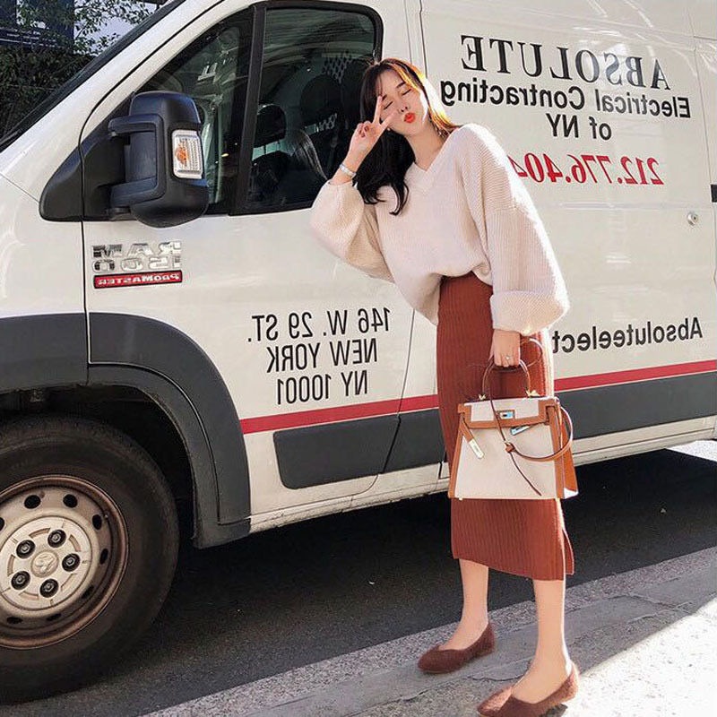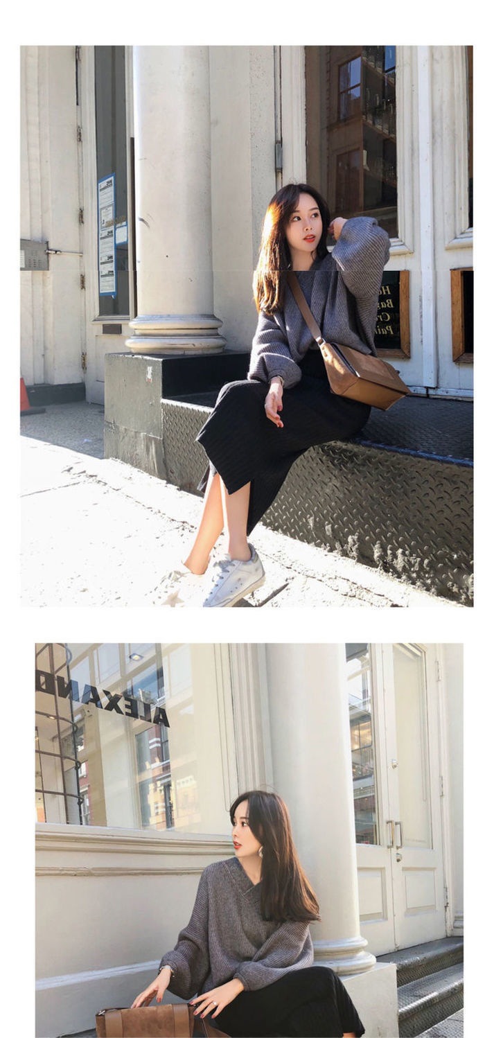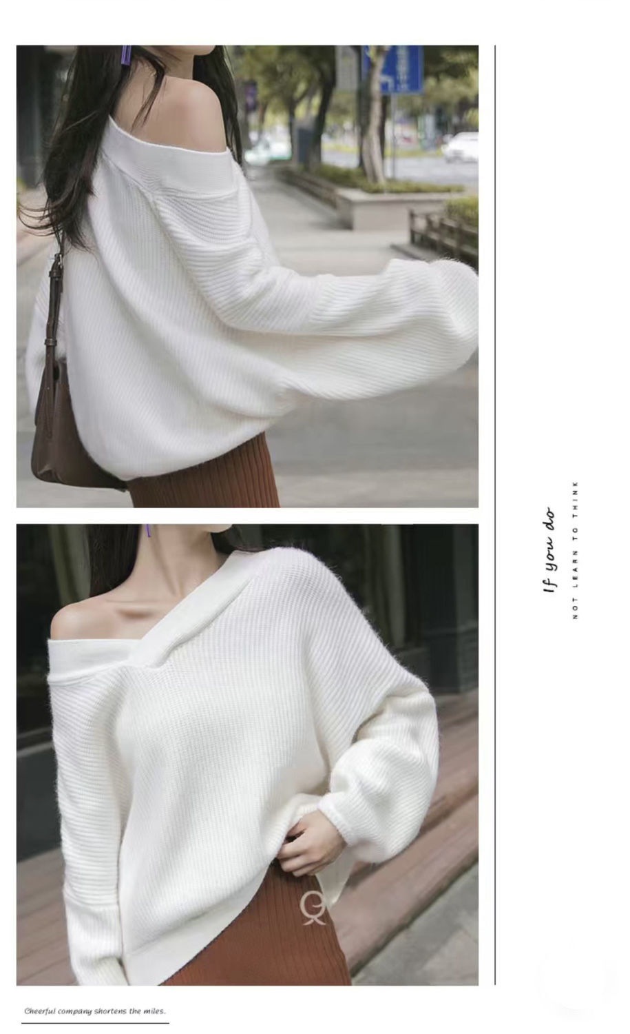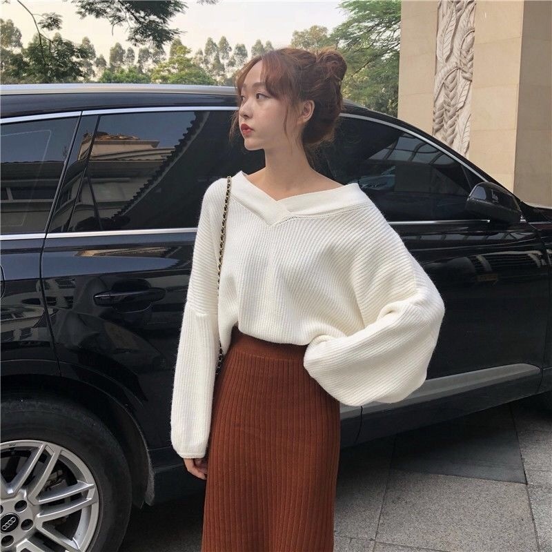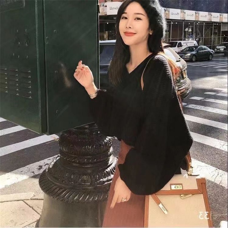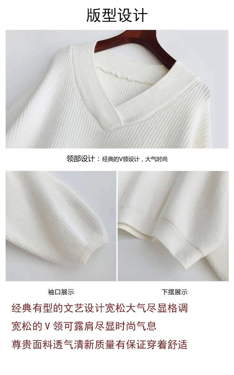 한국 스타일 게으른 스타일 V-넥 스웨터 여성용 2023 가을 겨울 새로운 패션 모든 매치 루즈한 스위트 슬림 스웨터스토어 가기