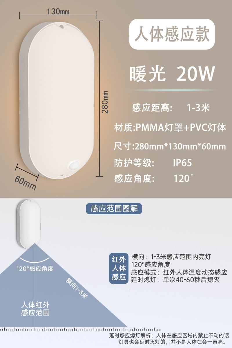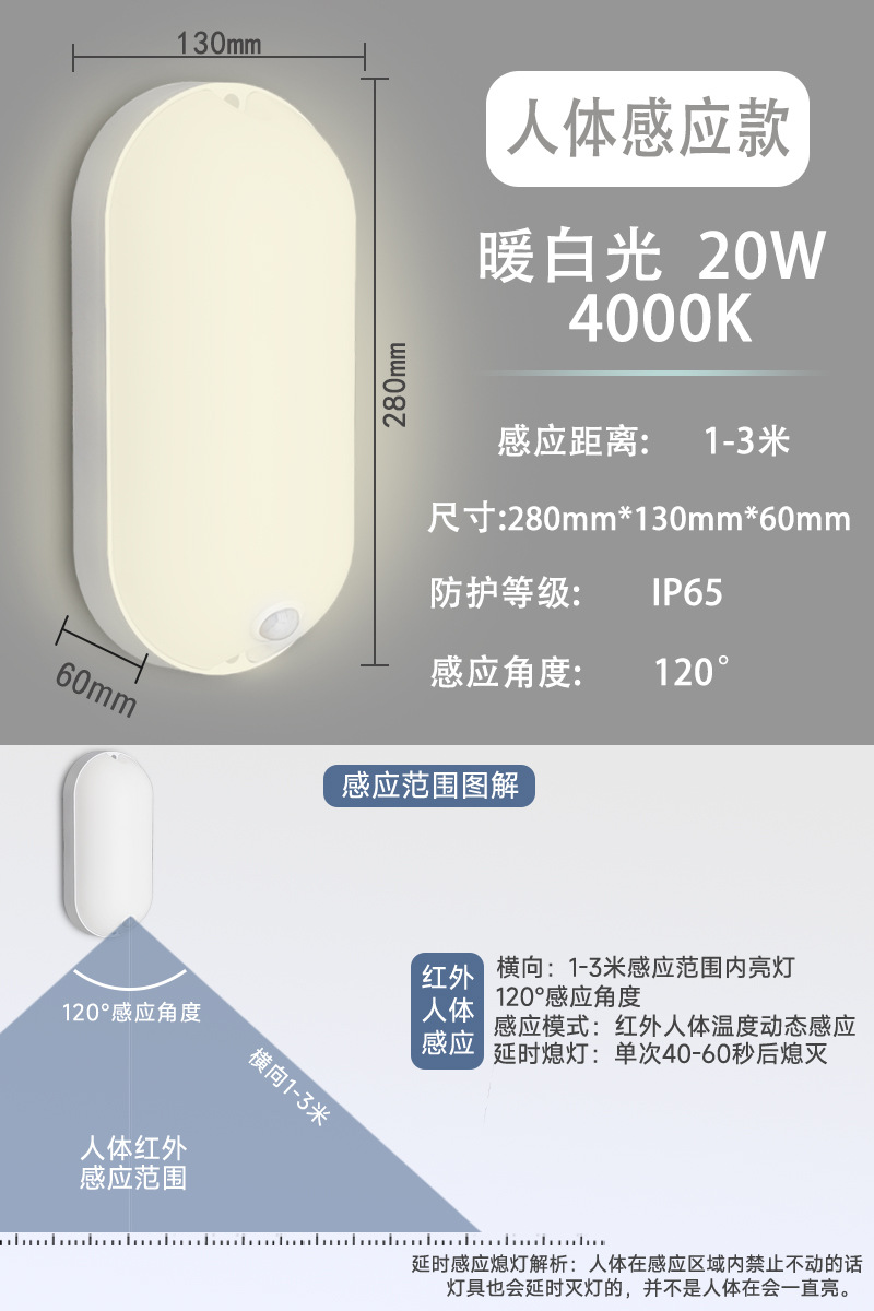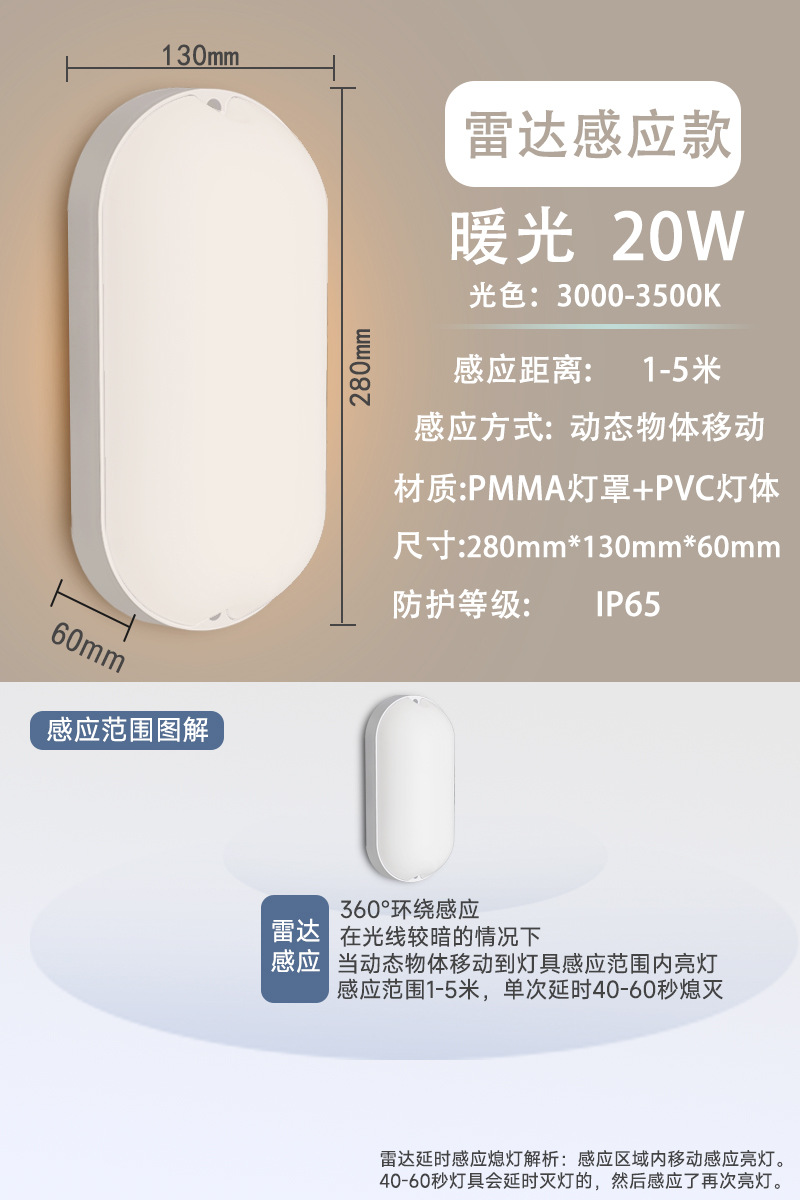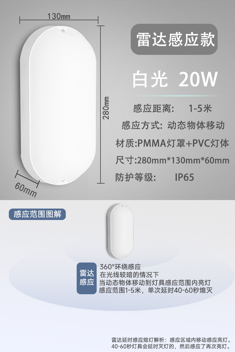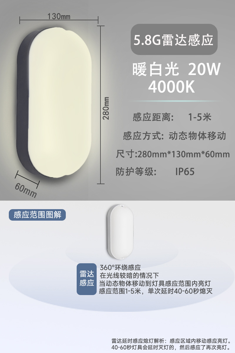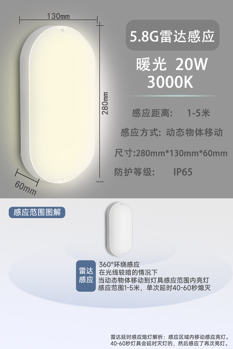 • 화이트 (온백색) 인체 감지 레이더 - 20WMT