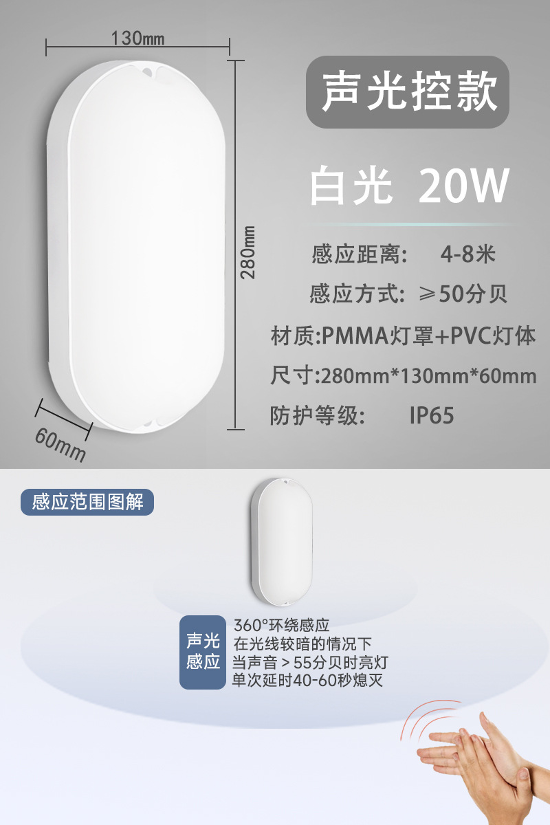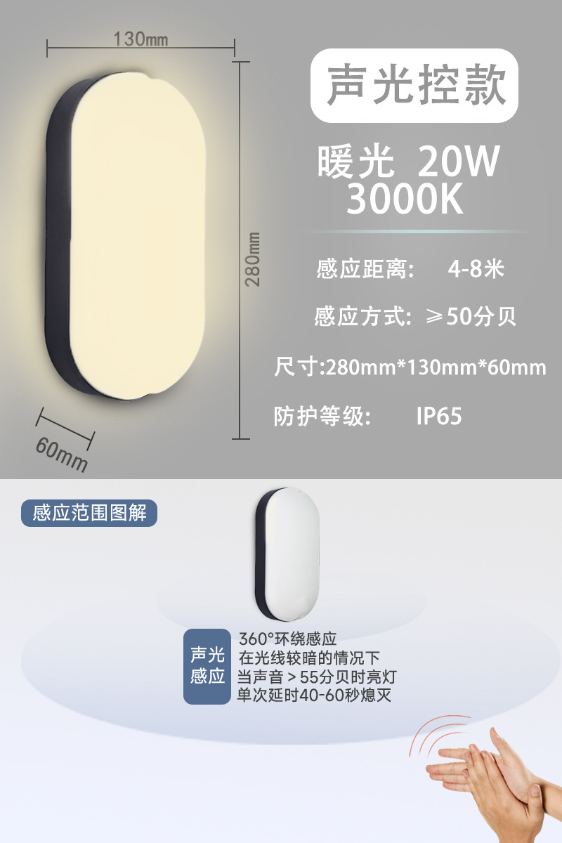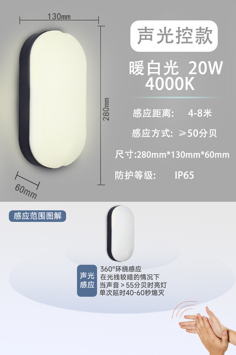 • 검정색 (백색광) 음향 감지 조명 - 20WMT