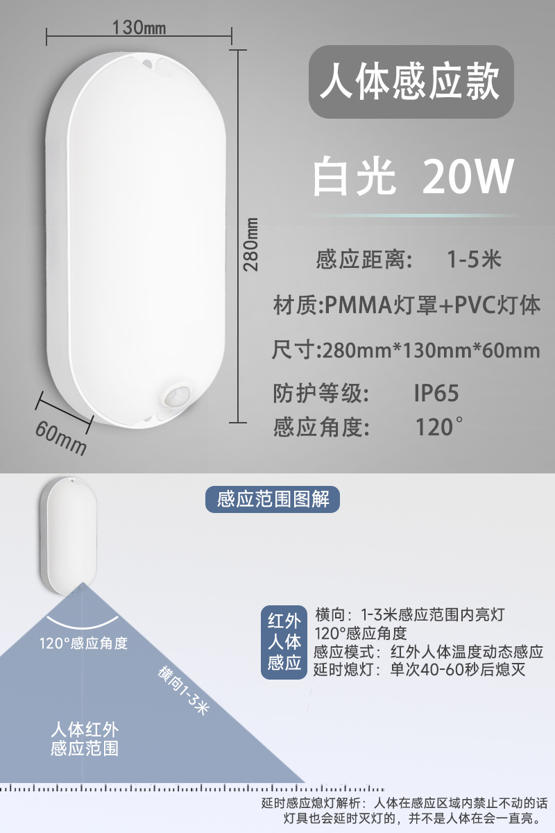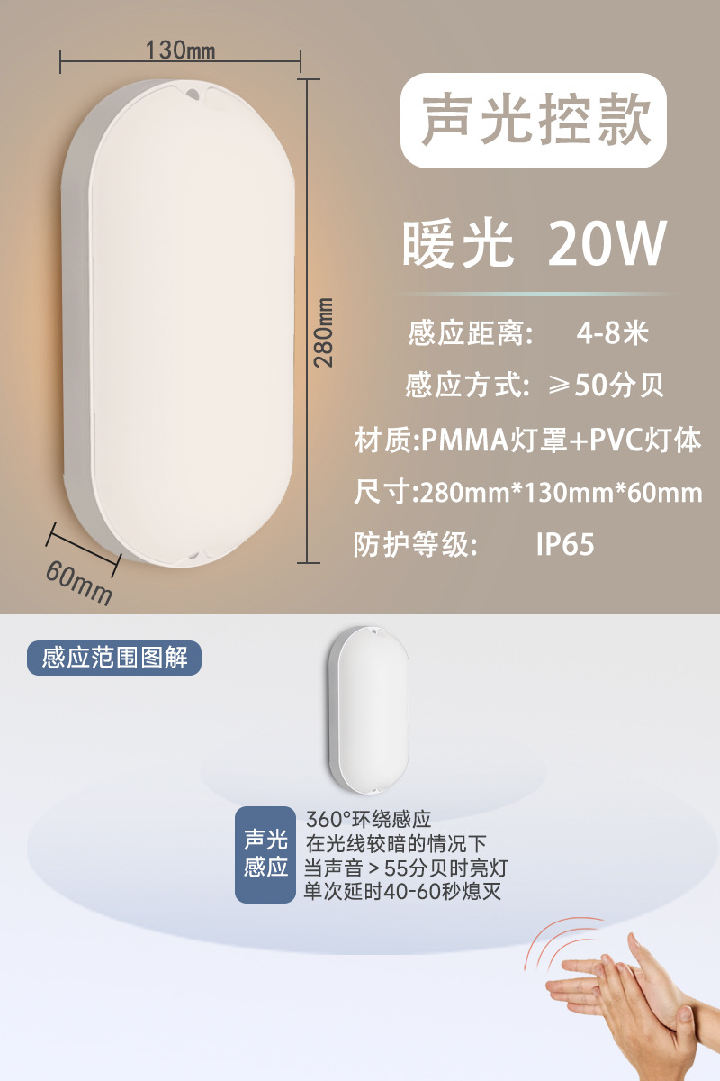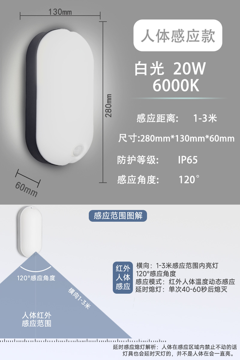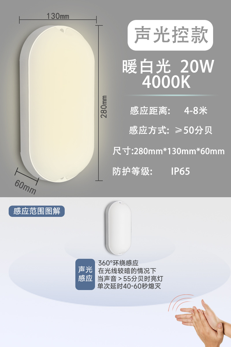 • 검정색 (백색광) 음향 감지 조명 - 20WMT