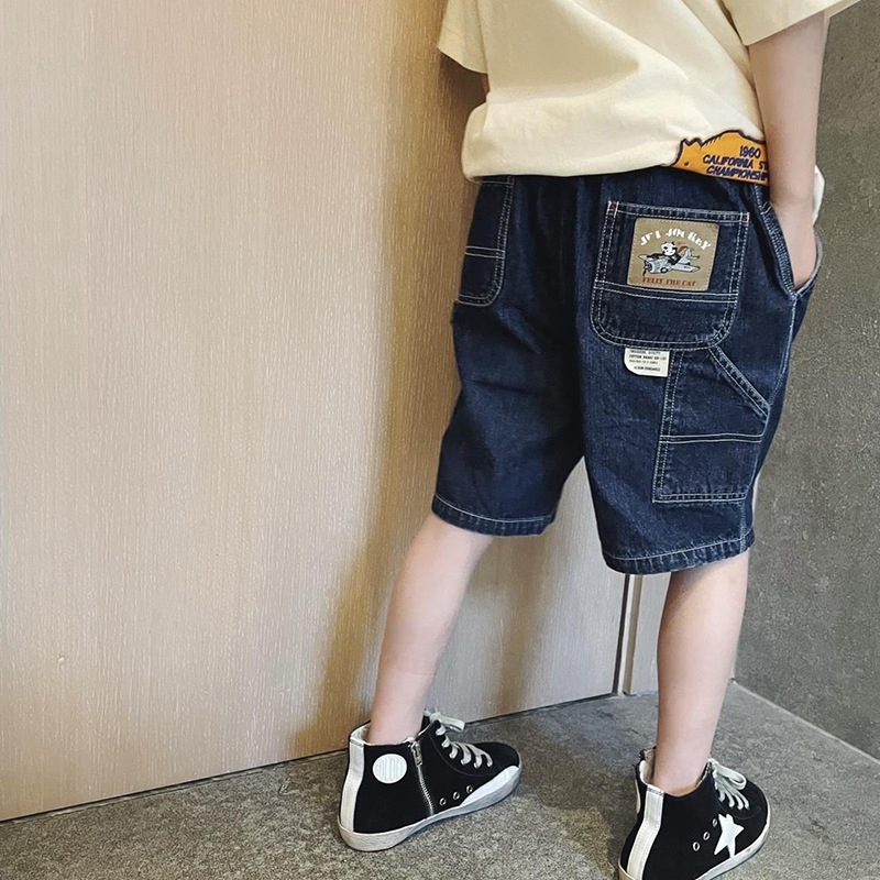 아동복 소년 여름 얇은 데님 반바지 2025 새로운 스타일 중대형 아동 겉옷 캐주얼 다용도 5부 바지 유행스토어 가기