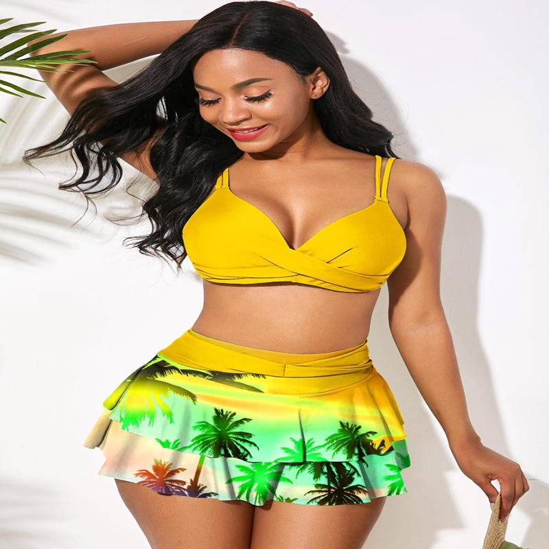 2022 새로운 유럽과 미국 크로스 보더 섹시 스플릿 하이 웨이스트 프릴 프린트 비키니 여성용 수영복 비키니