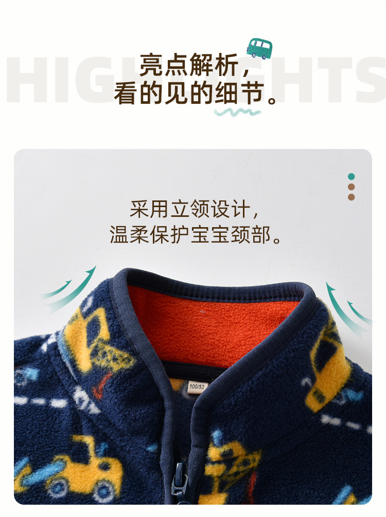 가을 2023 새로운 아기 폴라 양털 재킷 자동차 인쇄 남성과 어린이를위한 긴 소매 양털 재킷 wy1599스토어 가기