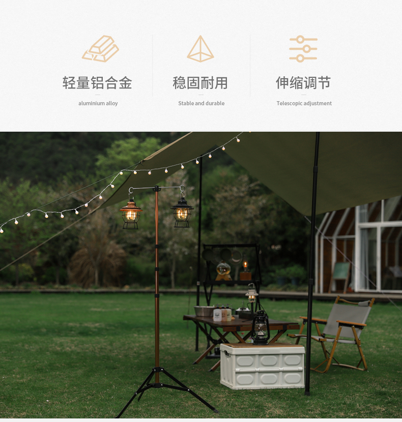 야외 캠핑 조명 램프 스탠드 휴대용 알루미늄 합금 텔레스코픽 램프 랙 피크닉 캠핑 램프 스탠드 다기능 랙
