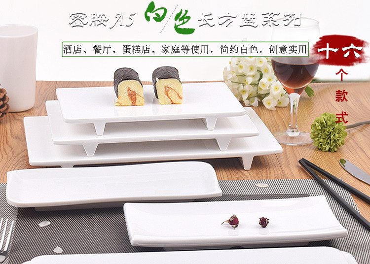 멜라민 같은 도자기 식기 직사각형 평판 초밥 바베큐 플랫 플라스틱 화이트 케이크 빵 접시 상업스토어 가기