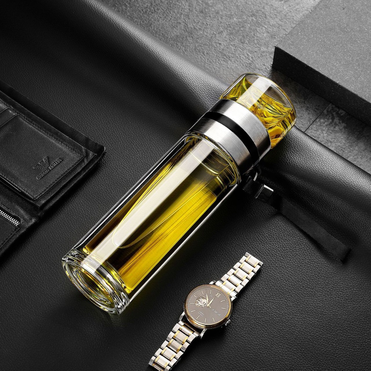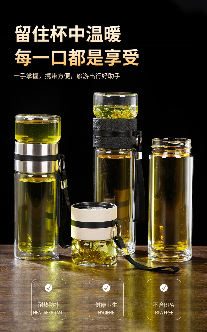 2 중 유리 컵 하이 컬러 값 차 분리 컵 고온 내성 버블 컵 사무실 선물 컵 인쇄 컵
