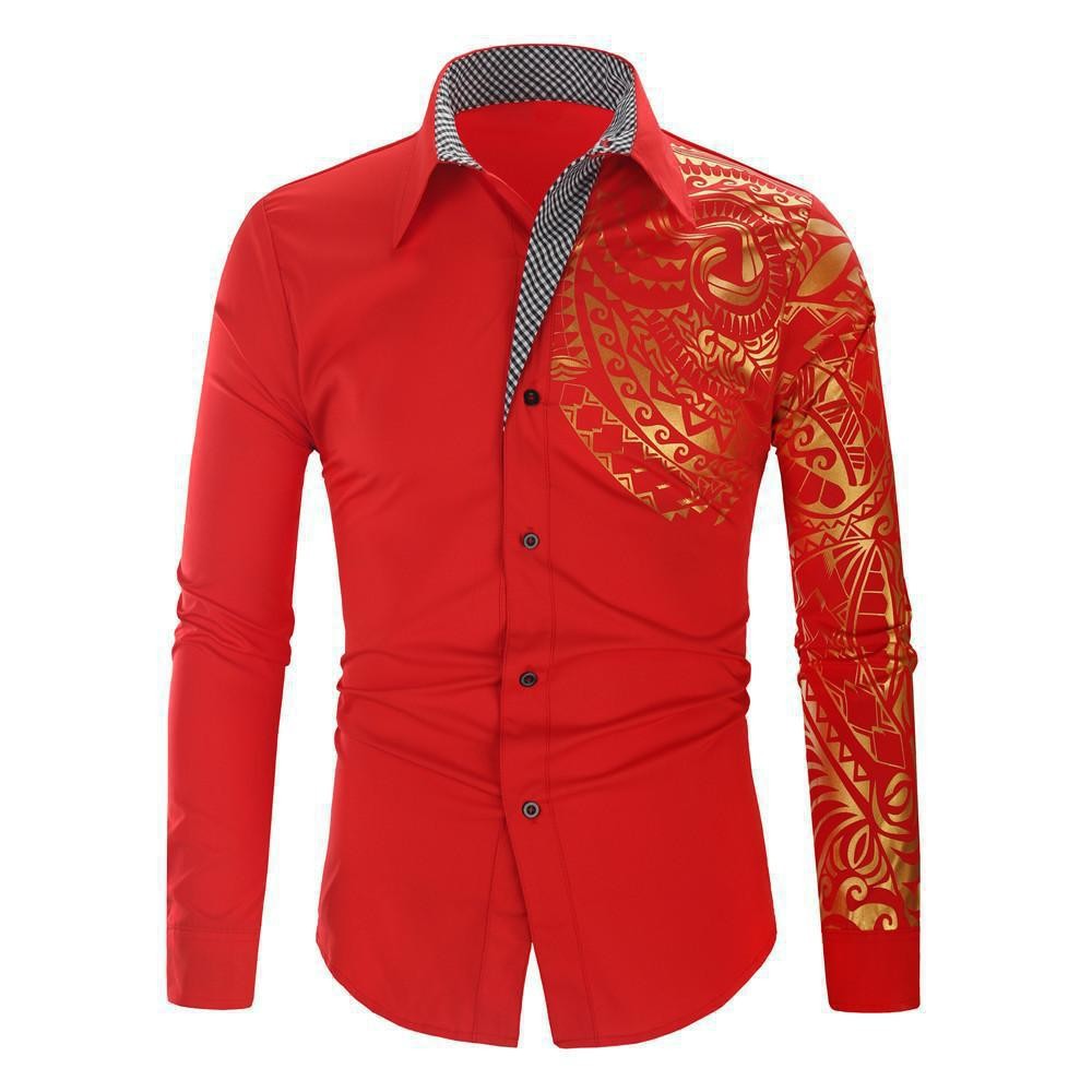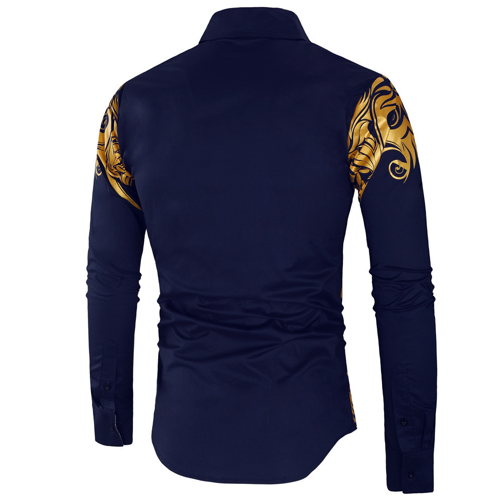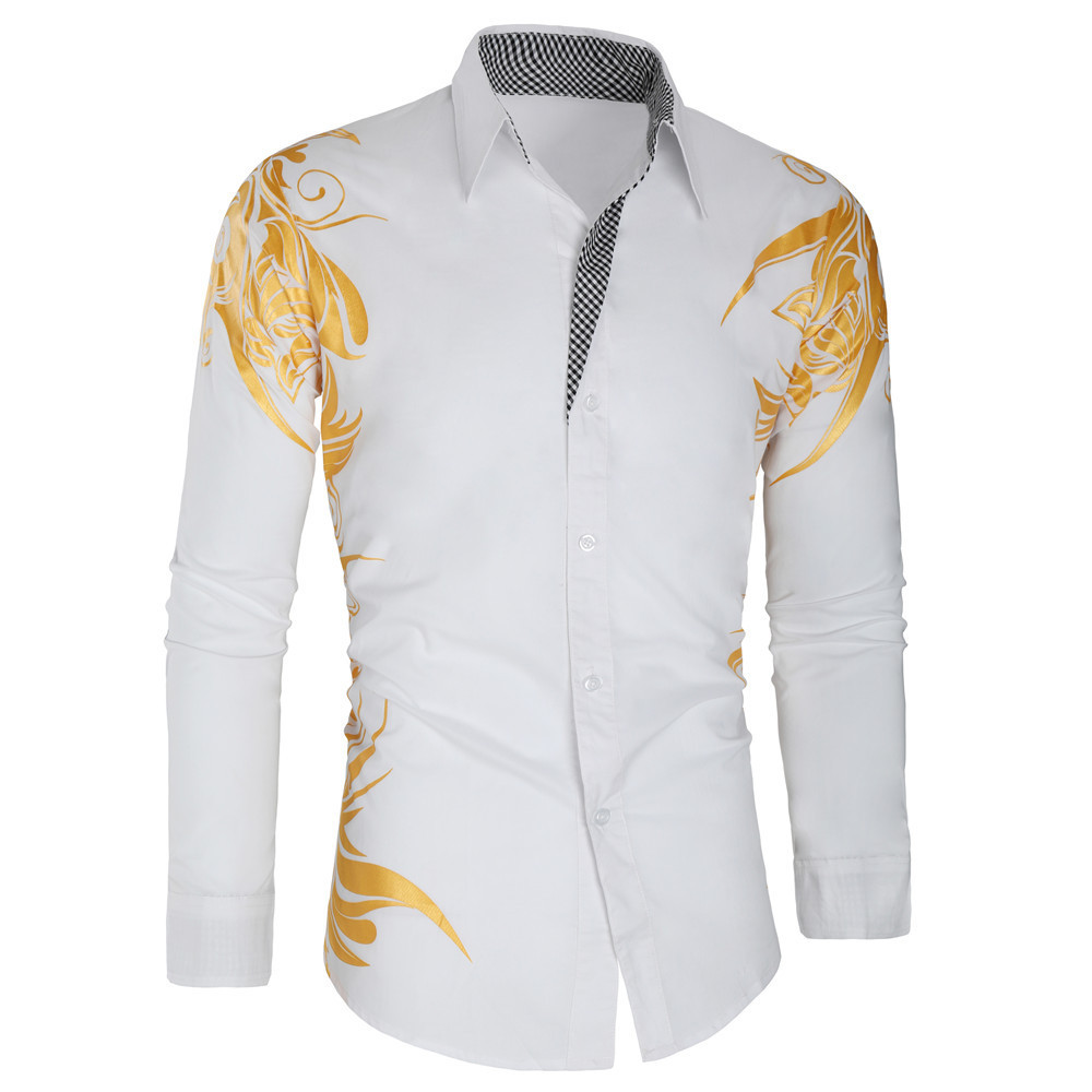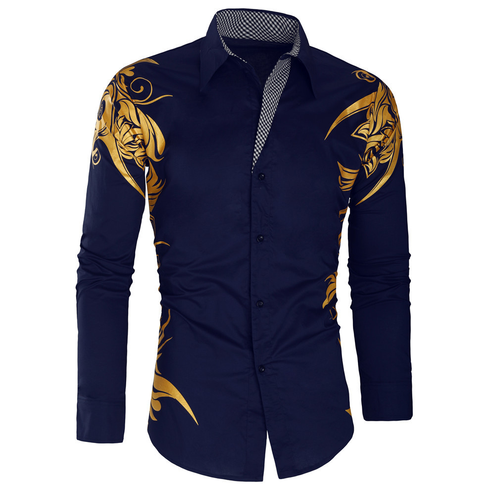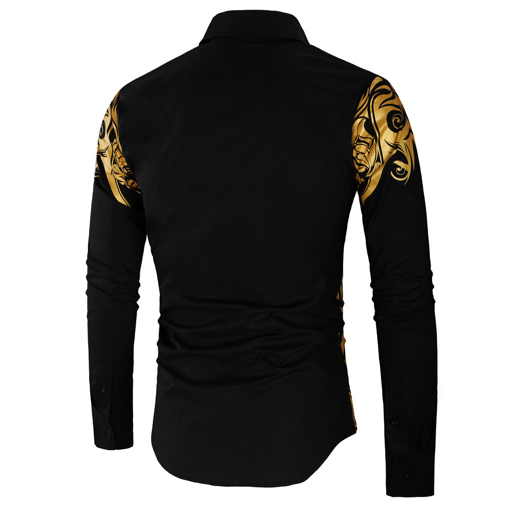 2025년 알리익스프레스 신제품 남성용 긴팔 인기상품 8 패션 금박 프린트 남성 셔츠 긴팔