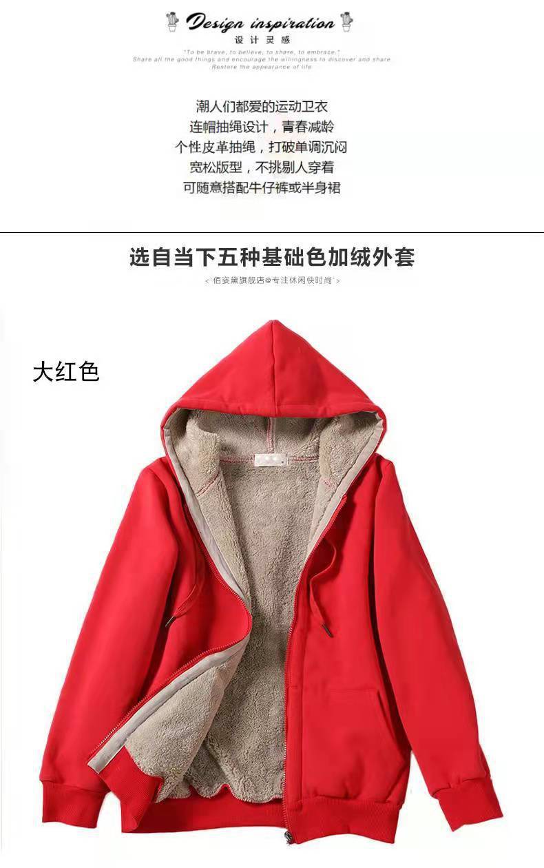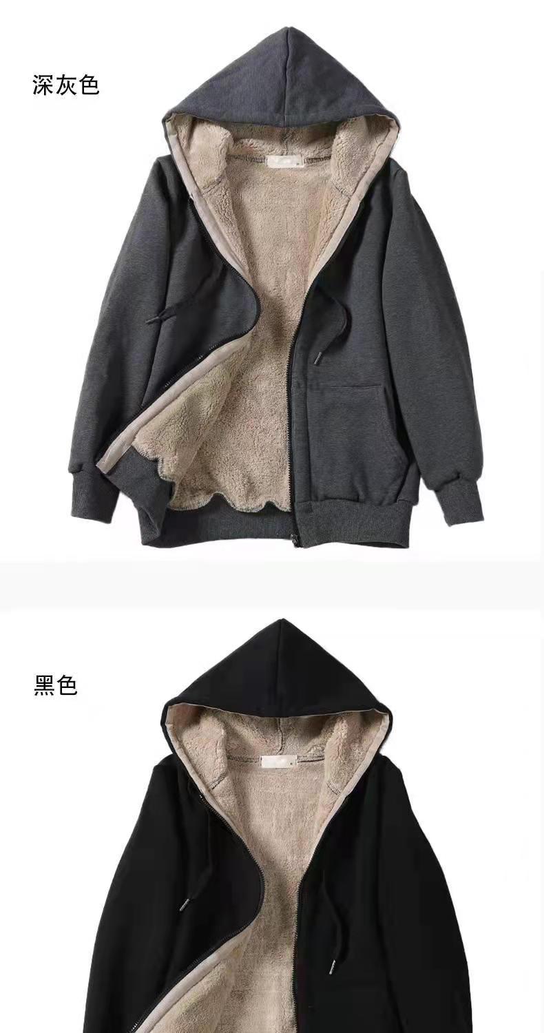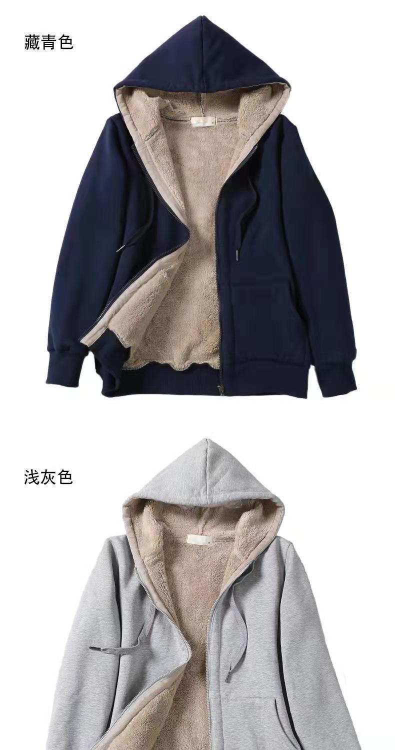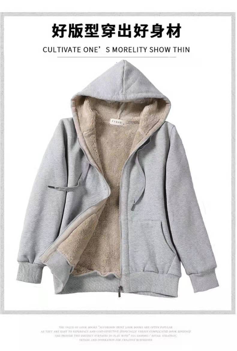 빅사이즈 2022 신상 가을 여성 의류 플러시 후드 긴팔 단색 스웨트셔츠 지퍼 플러시 루즈핏 자켓 여성용스토어 가기