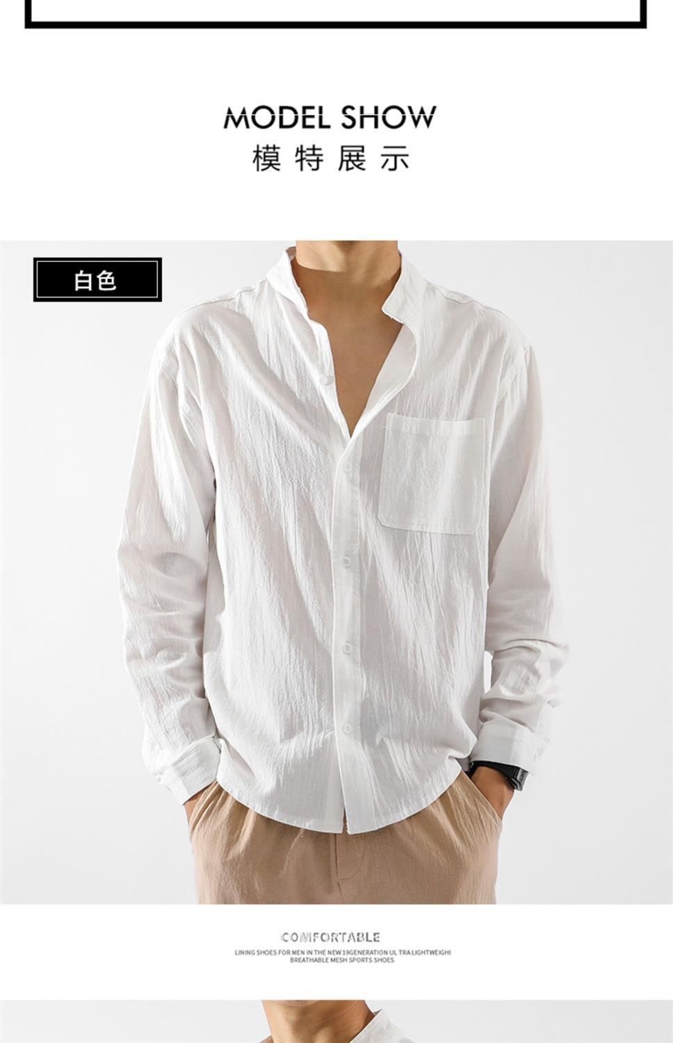 린넨 셔츠 남성용 긴팔 올 매치 중국 스타일 남성 셔츠 루즈한 남성 자켓 코튼 린넨 캐주얼 탑