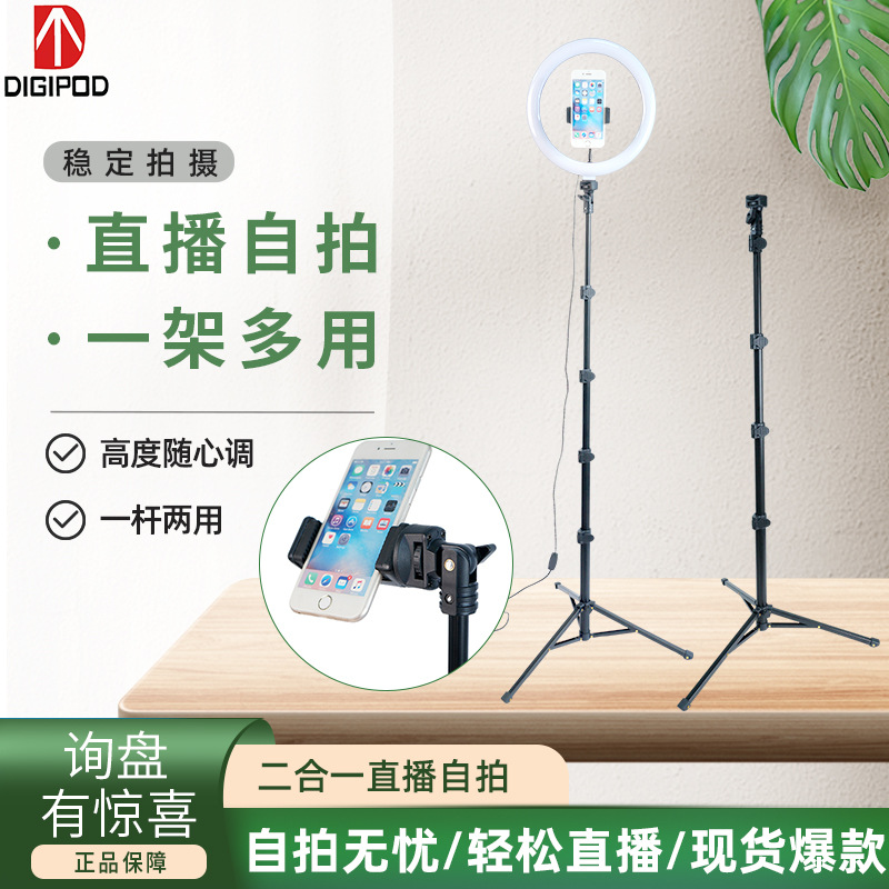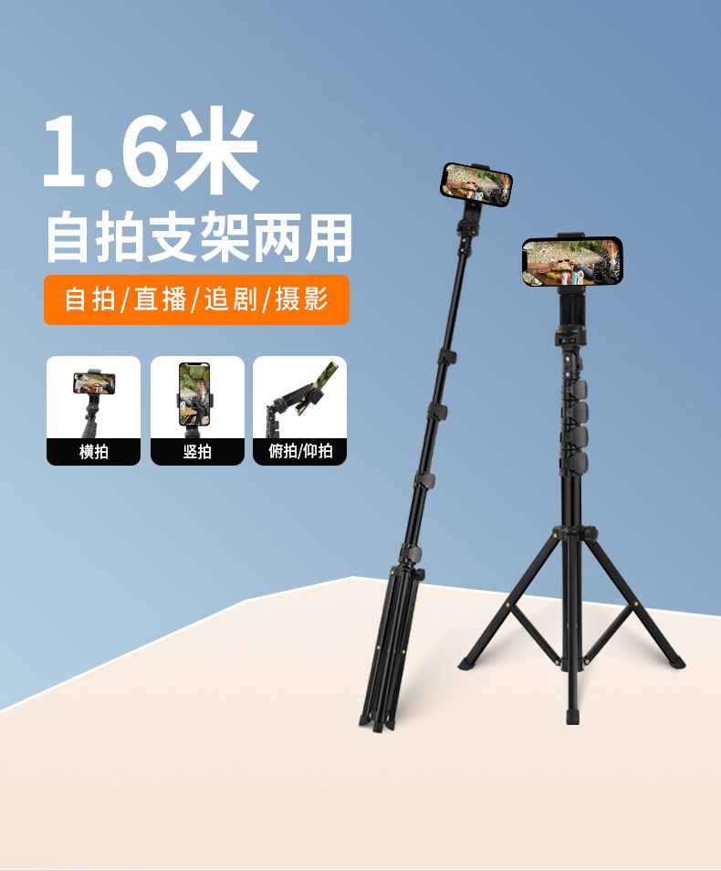 공장 직접 공급 투인원 라이브 셀카 휴대 전화 삼각대 무료 텔레스코픽 셀카 스틱 편리한 플로어 브래킷
